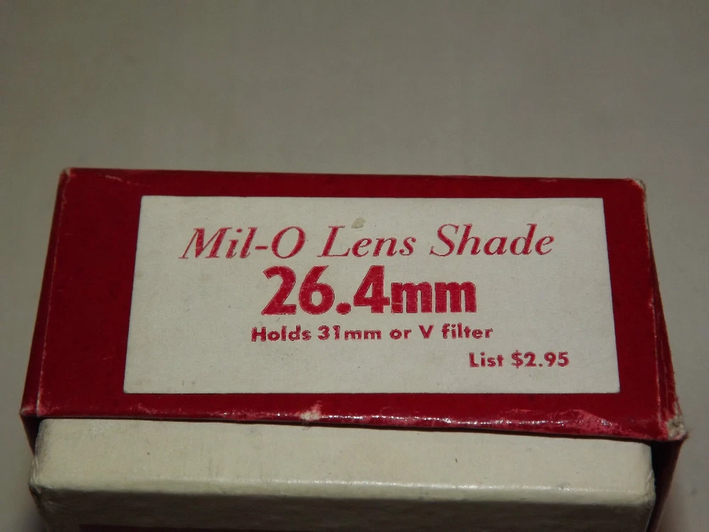YOU ARE BIDDING ON........ VINTAGE EASTMAN KODAK CO MIL-O LENS SHADE 26.4MM ..... ......SHOWS SOME USAGE WEAR...PLEASE VIEW PHOTOS FOR CONDITION.***PLEASE E-MAIL IF YOU HAVE A QUESTION OR WANT AN ADDITIONAL PICTURE....PLEASE VISIT MY EBAY STORE FOR ADDITIONAL VINTAGE ITEMS..THANK YOU***