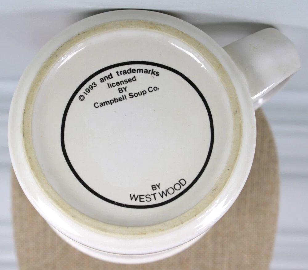 VINTAGE CAMPBELLS SOUP COFFEE OR SOUP MUG CUP 14 OZ 1993 WESTWOOD M'M! M'M! GOOD BEAUTIFUL VINTAGE CAMPBELLS SOUP COLLECTORS MUG FROM 1993, 14 OUNCE CAPACITY SMOOTH HIGH GLOSS FINISH ✨✨✨✨✨ WOULD MAKE A GREAT GIFT MUG IS IN VERY GOOD CONDITION NO CHIPS, CRACKS OR CRAZING PAINT IS VERY GOOD ONLY MINOR SIGNS OF AGING OR SHELF WEAR PLEASE SEE PICS FOR DETAILS ADD TO YOUR COLLECTION Will ship to you with great care. Will ship to the United States and Protectorates via USPS International shipments will ship via Ebay's Global Shipping Program (GSP) International packages will ship within one business day to eBay's GSP. eBay's GSP will then ship the package internationally. Handling and Shipping times may vary with GSP. Brought to you by The VinKris Collection