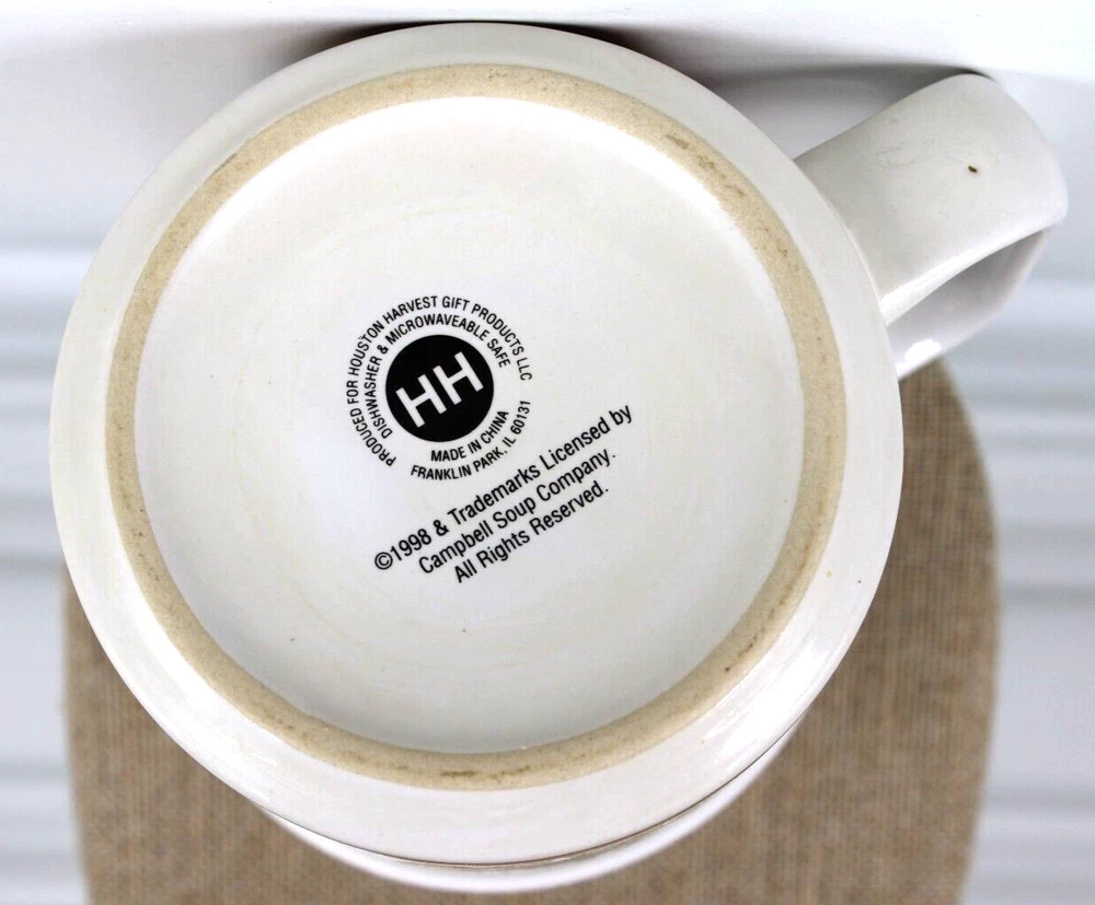 VINTAGE CAMPBELLS SOUP COFFEE OR SOUP MUG CUP 16 OZ 1998 W HANDLE M'M! M'M! GOOD BEAUTIFUL VINTAGE CAMPBELLS SOUP COLLECTORS MUG FROM 1998, 16 OUNCE CAPACITY SMOOTH HIGH GLOSS FINISH ✨✨✨✨✨ WOULD MAKE A GREAT GIFT MUG IS IN VERY GOOD CONDITION NO CHIPS, CRACKS OR CRAZING PAINT IS VERY GOOD ONLY MINOR SIGNS OF AGING OR SHELF WEAR MINOR HARD TO SEE SCRATCH ON LEFT SIDE ABOVE BEARS HEAD PLEASE SEE PICS FOR DETAILS ADD TO YOUR COLLECTION Will ship to you with great care. Will ship to the United States and Protectorates via USPS International shipments will ship via Ebay's Global Shipping Program (GSP) International packages will ship within one business day to eBay's GSP. eBay's GSP will then ship the package internationally. Handling and Shipping times may vary with GSP. Brought to you by The VinKris Collection