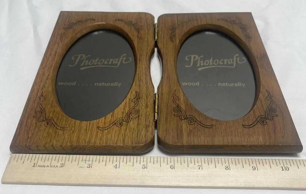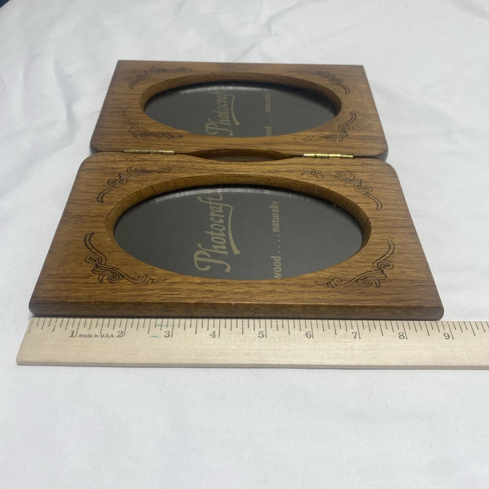 Department:AdultsOccasion:All OccasionsMounting:Free StandingItem Height:9 inTheme:AmericanaColor:BrownShape:RectangleTime Period Manufactured:1980-1989Item Width:1/2"Style:Rustic/PrimitiveCountry/Region of Manufacture:UnknownBrand:PHOTOCRAFTPhoto Insertion Type:Rear-LoadingSeller Notes:“Some minor scratches...see all photos”Pattern:StructuredItem Length:11 inPhoto Capacity:2Material:WoodEra:Late 20th Century (1970-1999)Features:hingedSuitable for Photo Size:3.5 x 5 inType:Photo FrameGlass Type:Clear Glass
