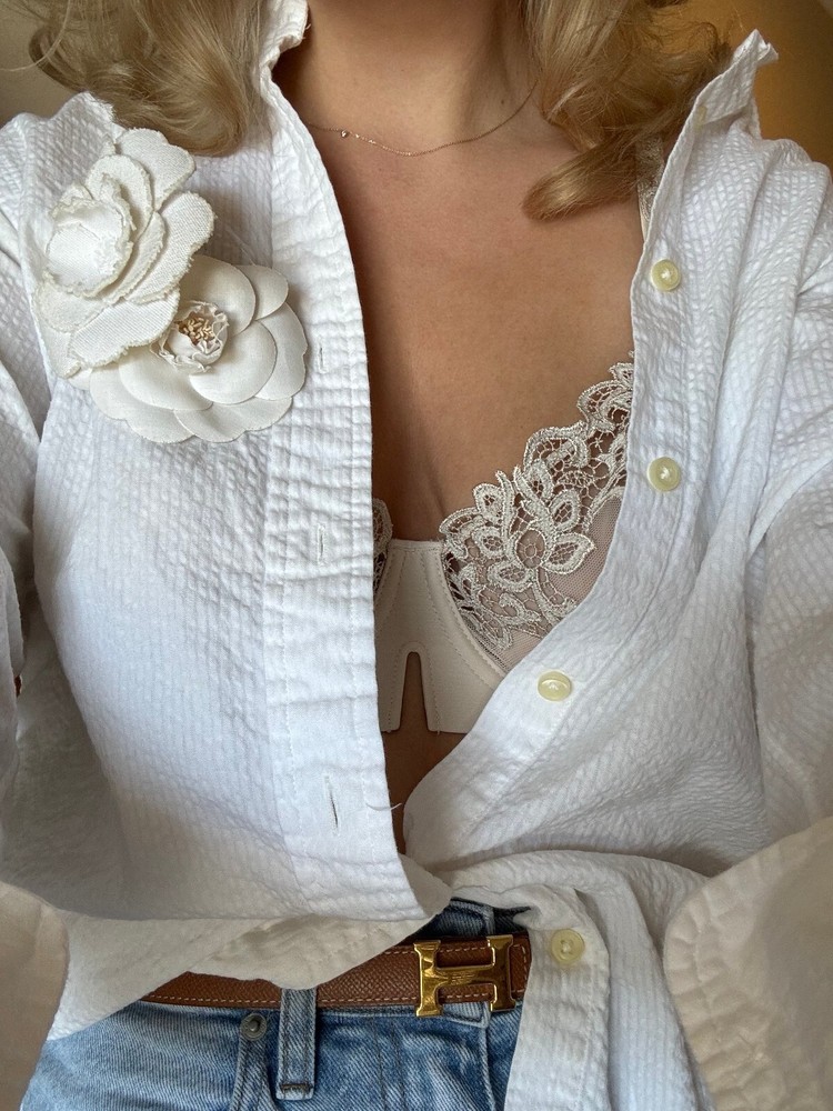CHANEL Camellia Brooch Timeless, feminine, and iconic, the camellia has been a cherished symbol of the house of CHANEL since 1913. This vintage brooch, crafted in France circa 1994, is a beautiful homage to that legacy. Made from soft ivory-toned fabric, the camellia’s sculptural form adds an elegant, understated touch to any outfit. Whether styled on a blazer, dress, handbag, or even in the hair, this piece brings effortless Parisian charm to your wardrobe. Details: Authentic vintage CHANEL Circa 1994 Ivory fabric camellia Pin-back closure Made in France Comes with original CHANEL box Some staining to the fabric Wear to the pin