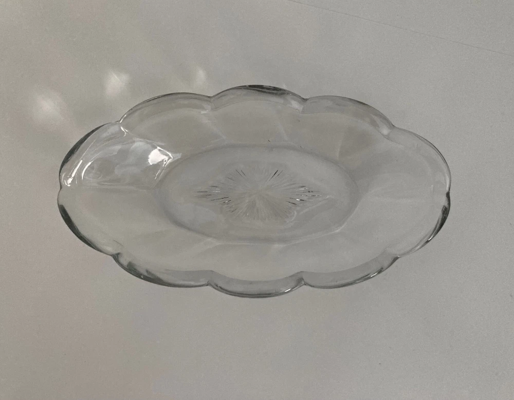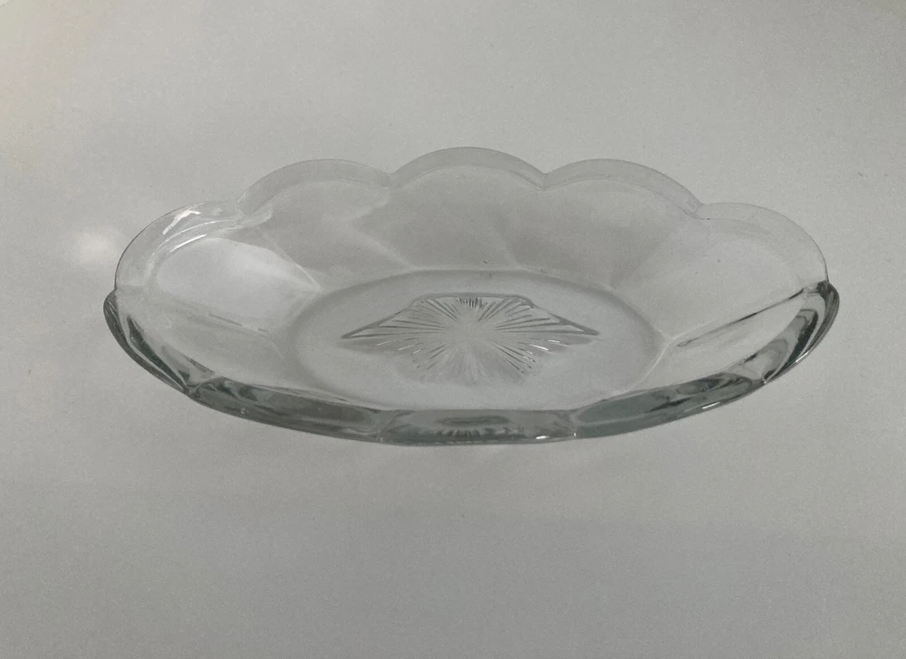 Vintage Clear Glass Oval Banana Split Dish or for Relish, Snacks, etc. Excellent condition – no chips or cracks Scalloped Rim – Starburst Design in Bottom 7 1/2” Long – 4” Wide – 1 ¼” Tall May be Depression Glass – it’s from a family member’s estate and she collected mostly Depression Era Glassware. Not sure of the pattern. Smoke free home – PPU if located in or near Howell, Michigan