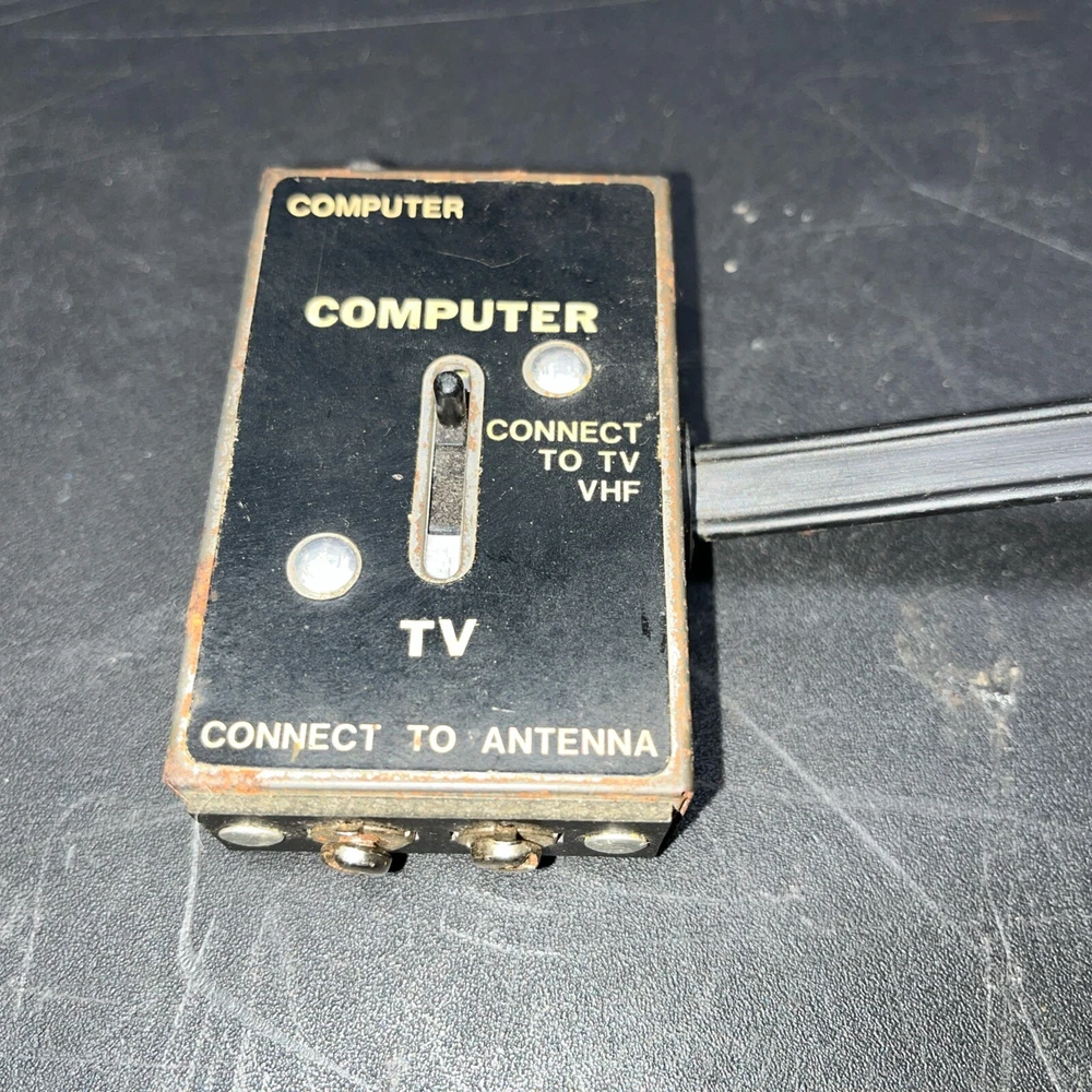 The product is a vintage computer or antenna switch to VHF TV connection device from Taiwan. It is untested and designed for connecting a computer or antenna to a VHF TV. It is not a custom bundle and does not appear to have been modified. It does not specify if it is suitable for non-domestic use. Untested some rust as is for parts or repair