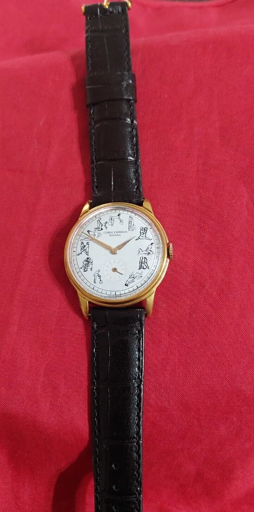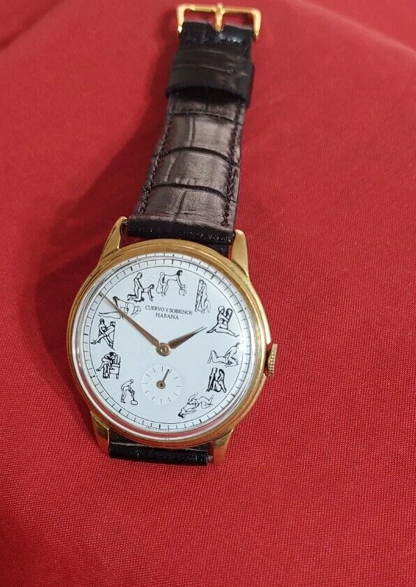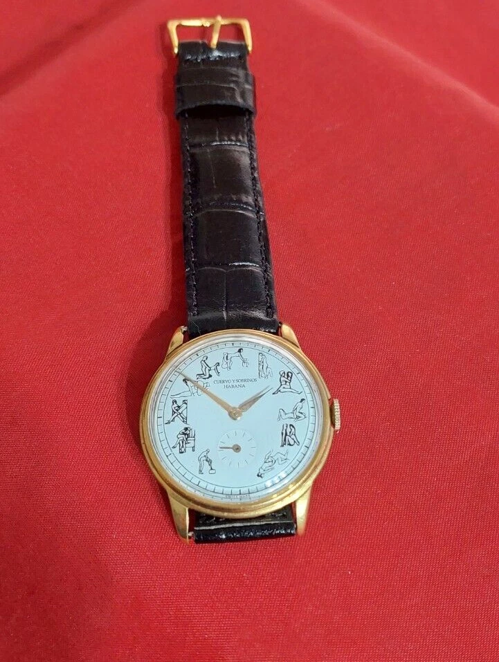 VINTAGE CUERVO Y SOBRINOS KAMA SUTRA ART - DECO 1960's WristWatch Movement MANUAL OF COLLECTION BEAUTIFUL WATCH MOVEMENT: ORIGINAL SWISS MANUAL, CUERVO Y SOBRINOS SIGNED SWISS, 17 JEWELS THIS MOVEMENT IS IN VERY GOOD CONDITION AND IT WORKS PERFECTLY CLEANING SERVICE RECENTLY DONE BY OUR WATCHMAKER DIAL: in tone White Kama Sutra professionally restored CROWN: unsigned CRYSTAL: Acrylic. CASE: Plaque 10 Micrones and STAINLESS STEEL ON BACK COVER,SEE PICTURE SIGNED Ulysse Nardin, IN VERY GOOD CONDITION SIZE: 37 MM WITHOUT CROWN AND 43 MM FROM LUG TO LUG STRAP: MADE OF LEATHER AND INCLUDED AS GIFT YOU ARE BIDDING ON THE WATCH ONLY, THE BAND IS FREE The large, clear unaltered pictures are an important part of the description. Please look carefully. We check the watch to be certain it keeps time and runs when listed and we re-check before shipping Fast Shipping by DHL EXPRESS!! !! USD 45 With tracking number and insurance ! (DEPENDING ON CUSTOM DELAYS IT COULD TAKE BETWEEN 7/10 BUSSINESS DAY OR EVEN MORE DEPENDING ON THE DISTANCE TO EVERY COUNTRY)