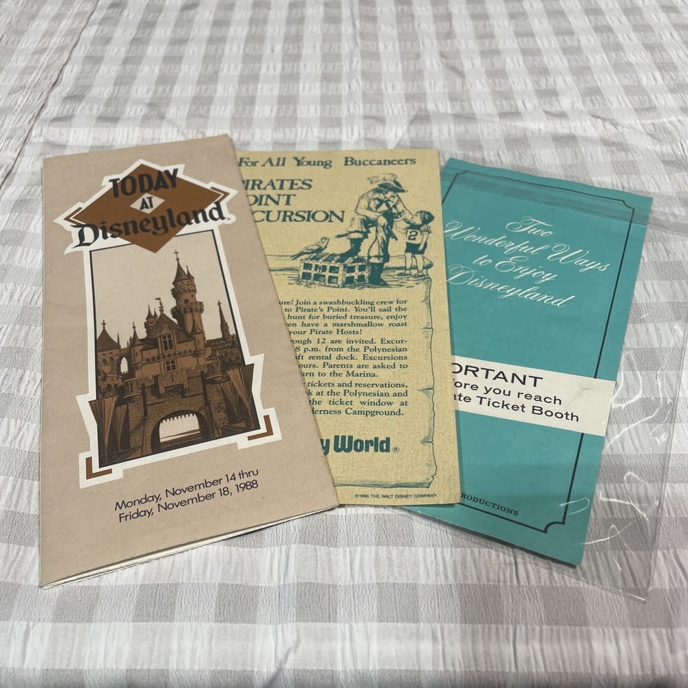 This product is a lot of three vintage Disney brochures from the 1960s to 1980s, featuring rare ephemera from Disneyland and Walt Disney World. These collectibles showcase various Disney franchises and theme park souvenirs, providing a glimpse into the history and nostalgia of Disney's past. Perfect for Disney enthusiasts and collectors looking to add unique and historical pieces to their collection.