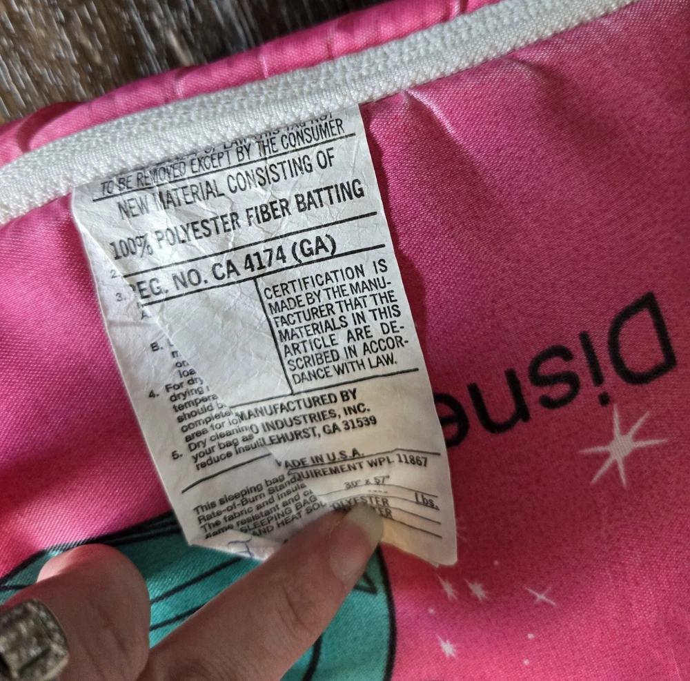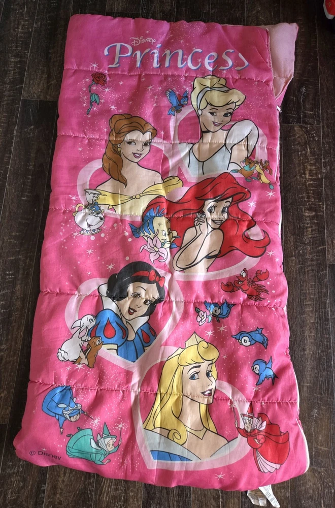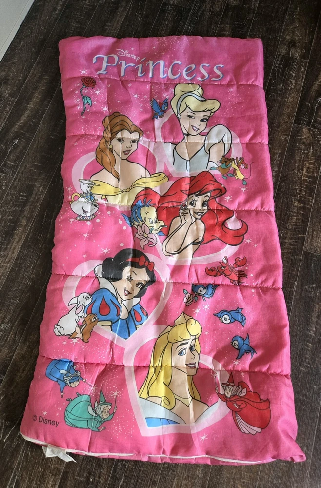 VINTAGE Disney Pink Princess Sleeping Bag Kids Belle Cinderella Ariel Snow White
