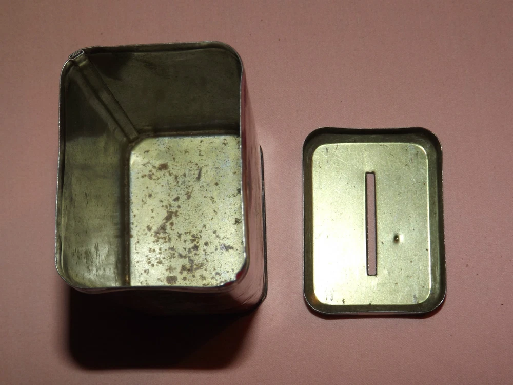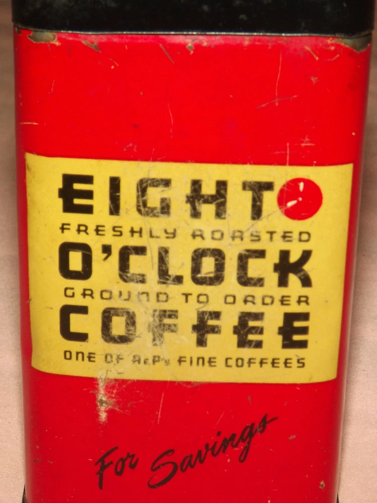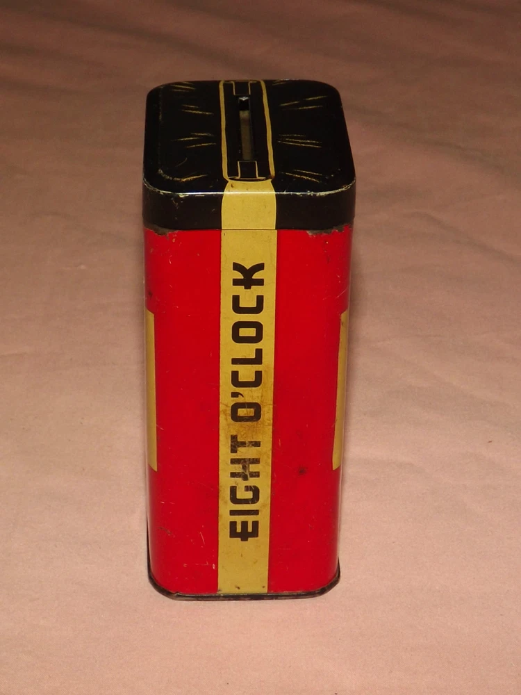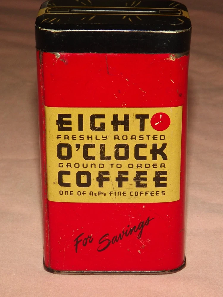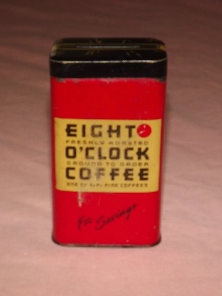 YOU ARE BIDDING ON...... VINTAGE EIGHT O'CLOCK COFFEE FOR SAVINGS TIN COINS BANK .... ... MEASURES APPROX 4" HIGH.. ..SHOWS USAGE/HANDLING WEAR/SCRATCHES/PAINT LOSS/AGE DISCOLORATION /FEW DINGS ........... .PLEASE VIEW PHOTOS FOR CONDITION.***PLEASE E-MAIL IF YOU HAVE A QUESTION OR WANT AN ADDITIONAL PICTURE....PLEASE VISIT MY EBAY STORE FOR ADDITIONAL VINTAGE ITEMS..THANK YOU*** 77661212