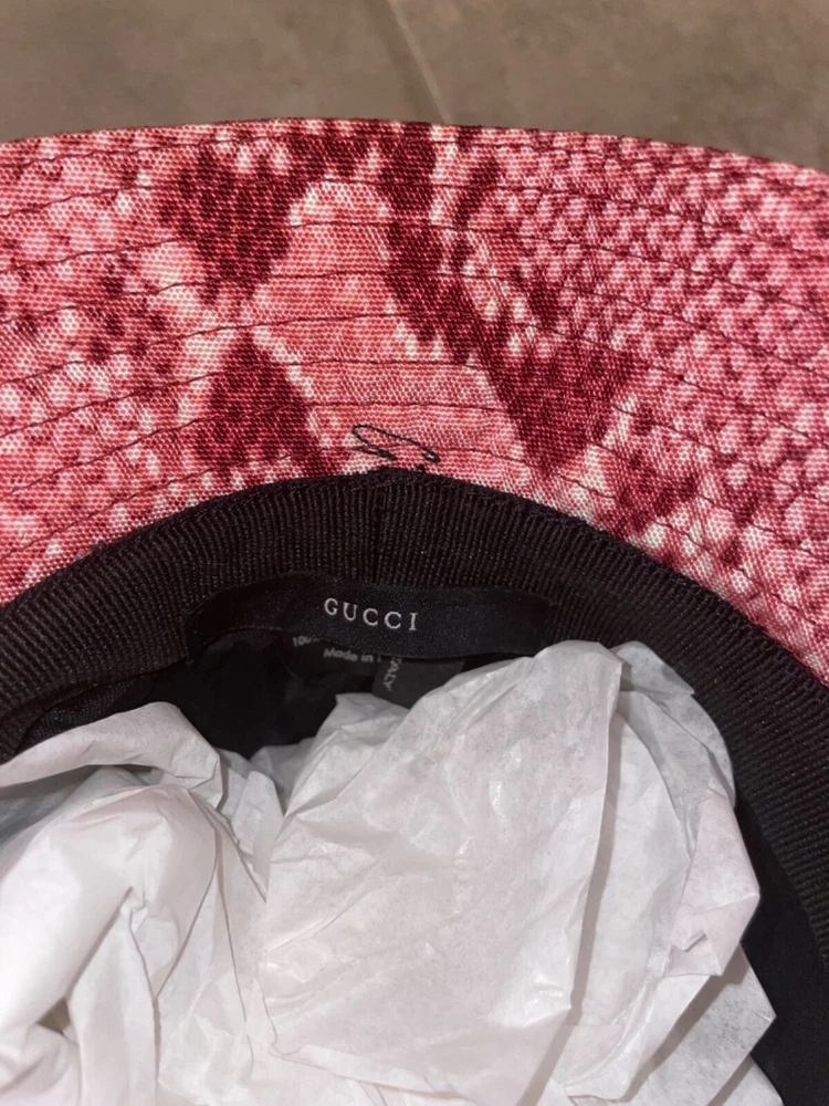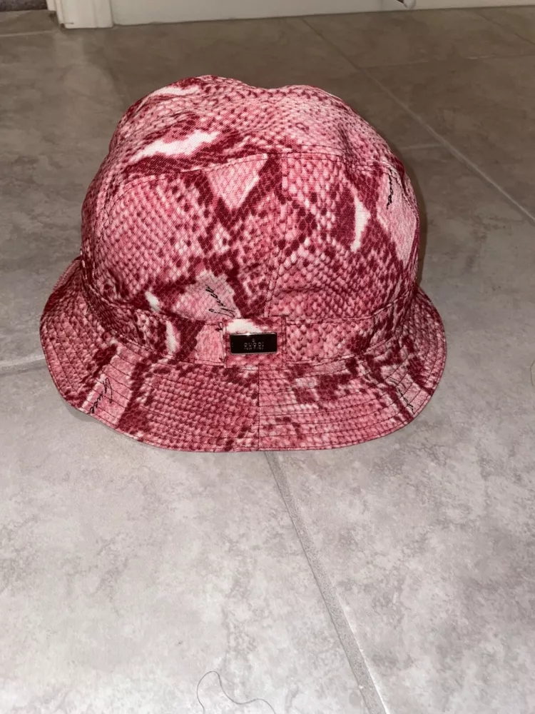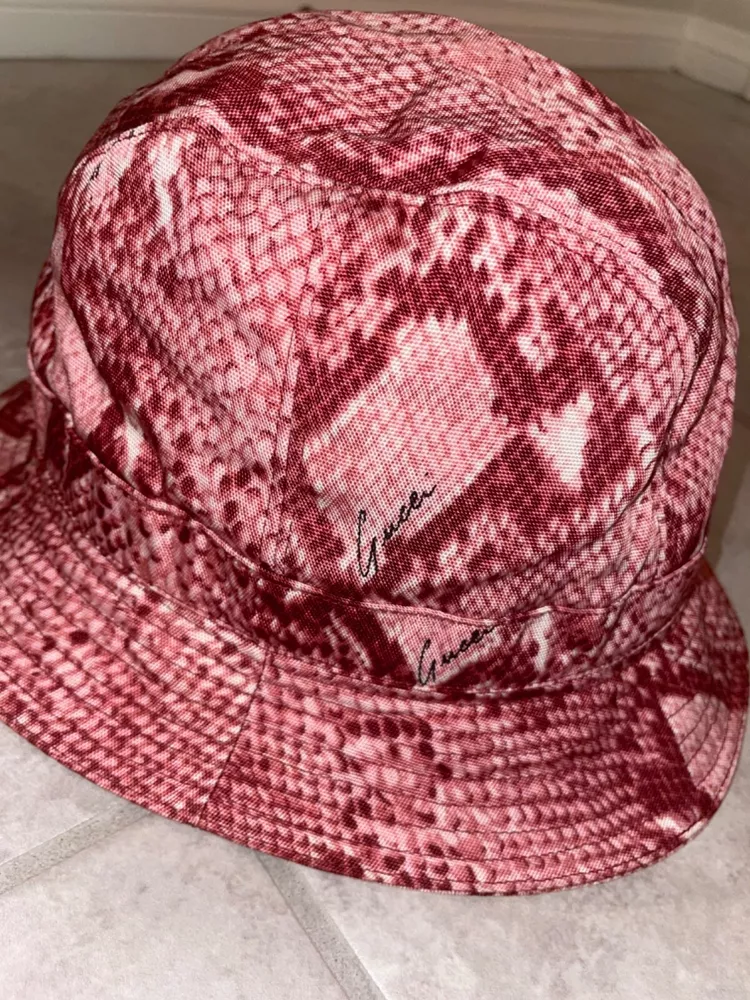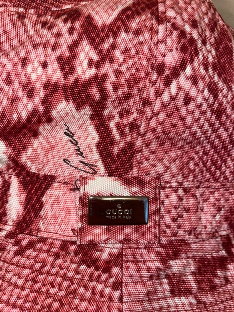 VINTAGE GUCCI By Tom Ford Y2K Bucket Hat Snakeskin Print Pink/Burgundy Size S