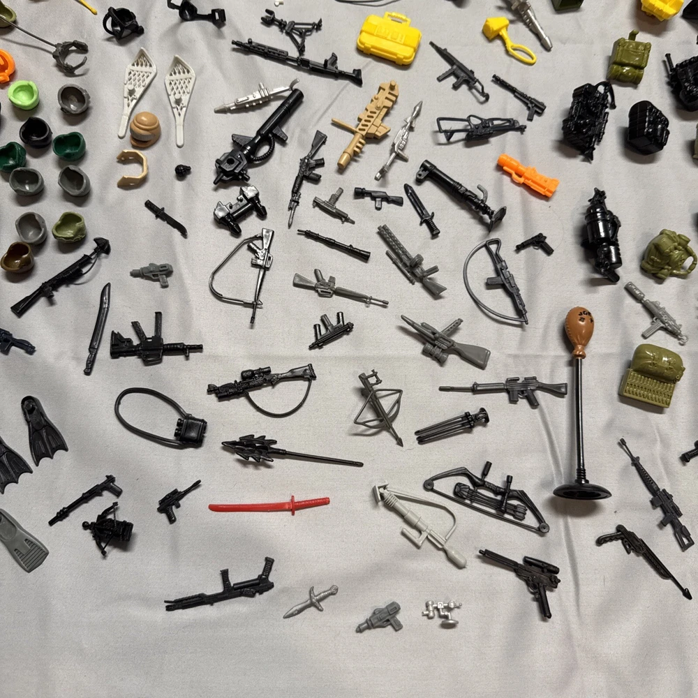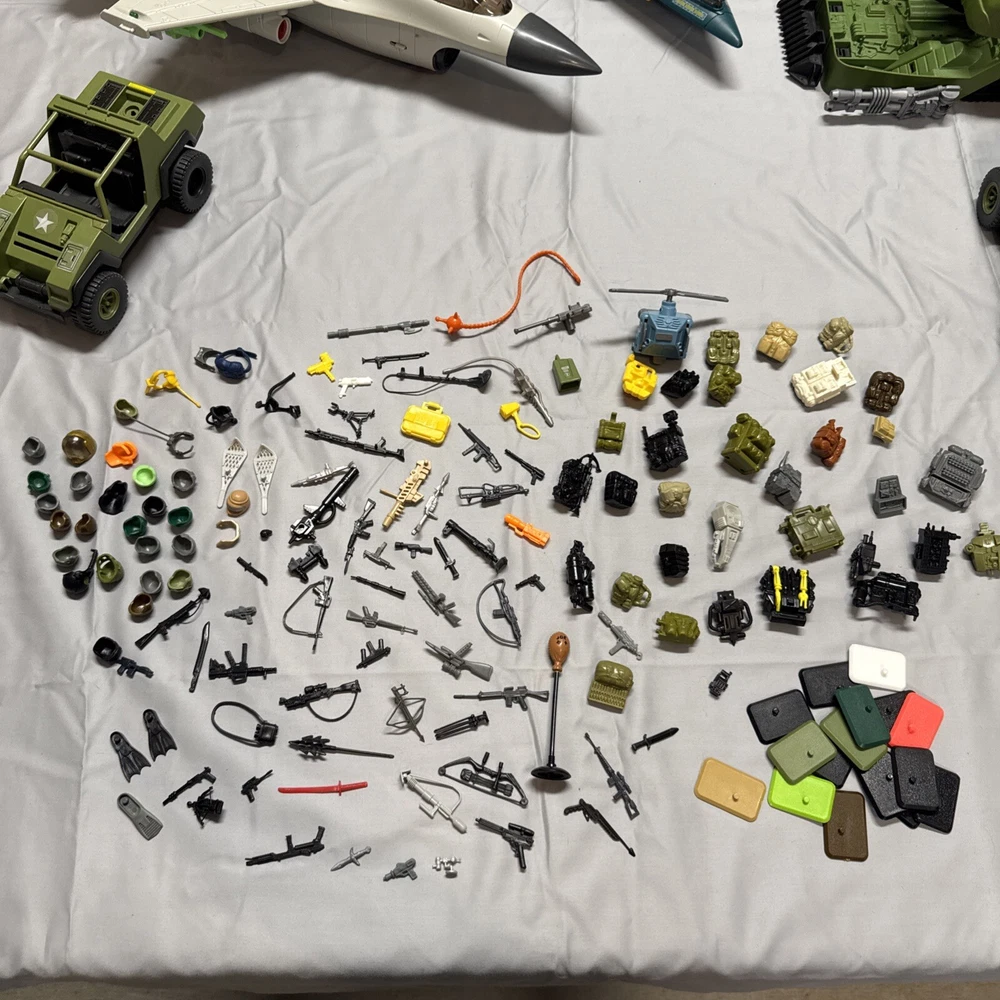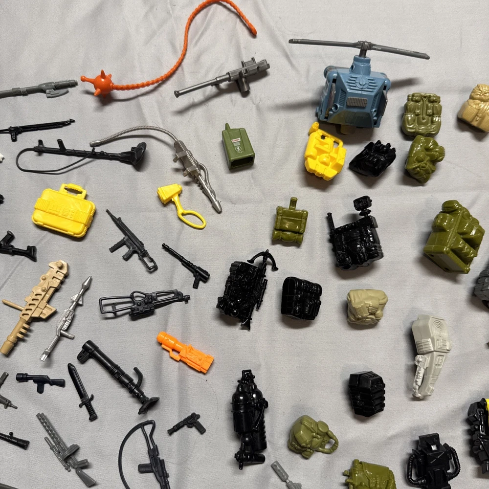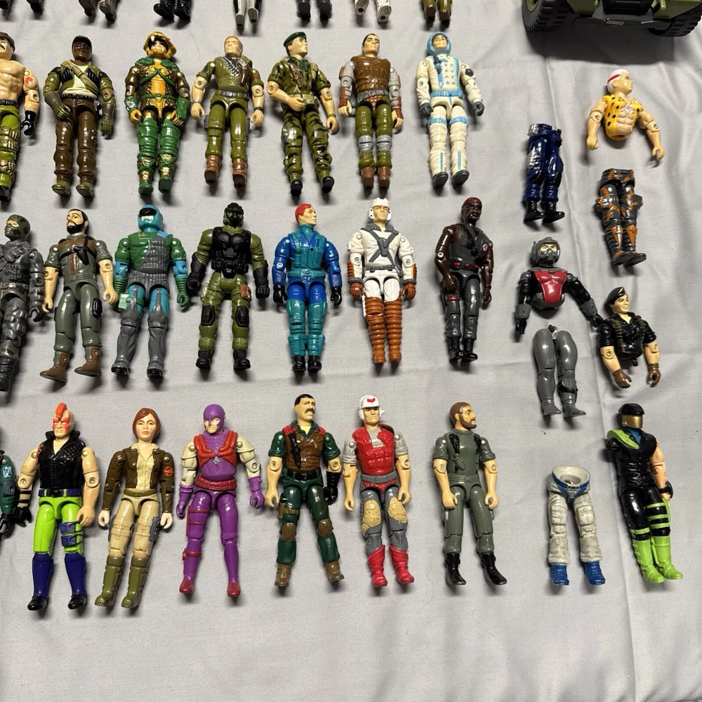 Lot of 65+ figures in good preowned condition Sold as is All figures not from same time period or set All figures have repaired elastic bands Some figures not complete 2 figures may be from McDonald’s See 2 figures have damaged crotch pieces All accessories not guaranteed to be g I Joe brand See vehicles not complete Plane in working condition. One red light not working on plane I ship every day