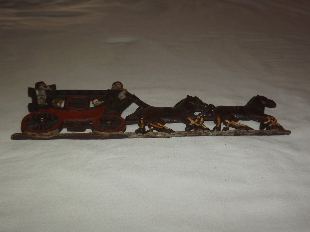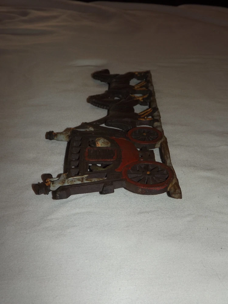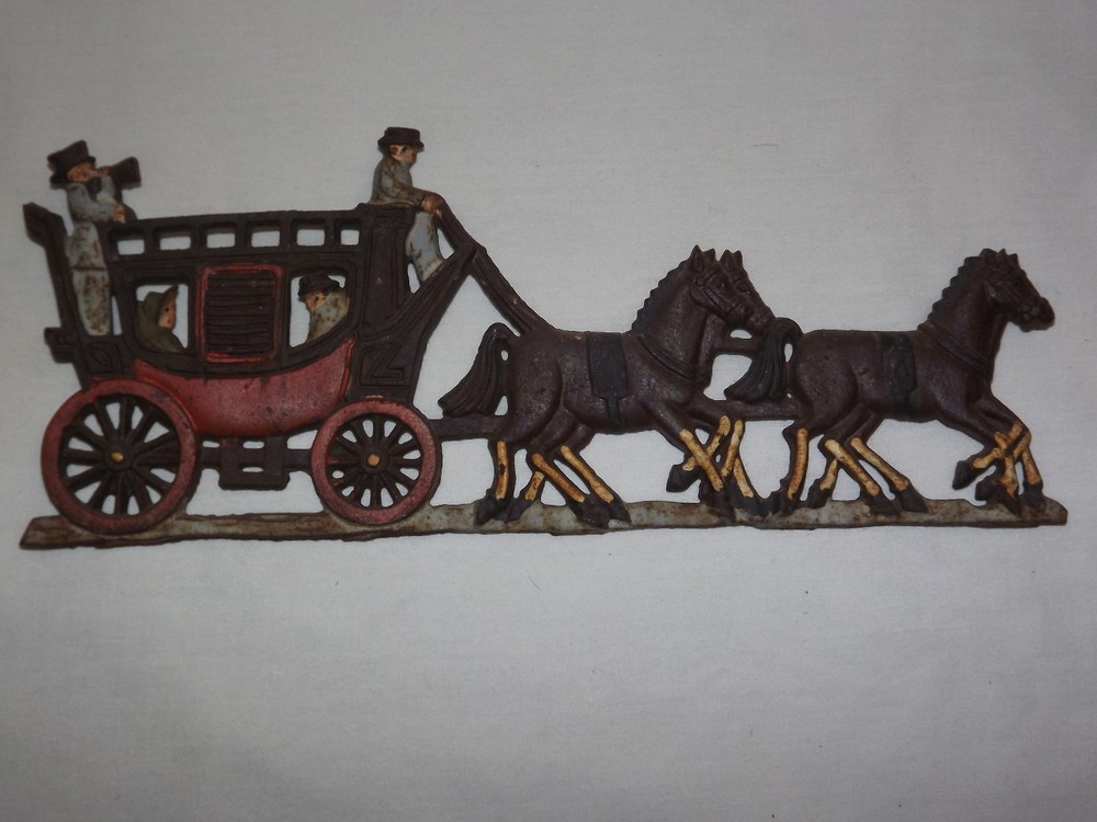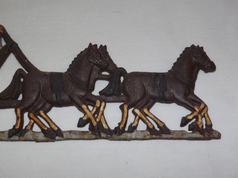 YOU ARE BIDDING ON...... VINTAGE HORSE & CARRIAGE HAND PAINTED METAL WALL PLAQUE DECORATION.... . . .MEASURES APPROX 11 1/2" LONG...4 1/2" HIGH..SHOWS DISPLAY/AGE WEAR..HAS PAINT LOSS/AGE DISCOLORATION.ONE OF THE METAL HOOKS ON BACK IS BENT...PLEASE VIEW PHOTOS FOR CONDITION.***PLEASE E-MAIL IF YOU HAVE A QUESTION OR WANT AN ADDITIONAL PICTURE....PLEASE VISIT MY EBAY STORE FOR ADDITIONAL VINTAGE ITEMS..THANK YOU*** BX6408-2N-3003-9R-0308-XXXX