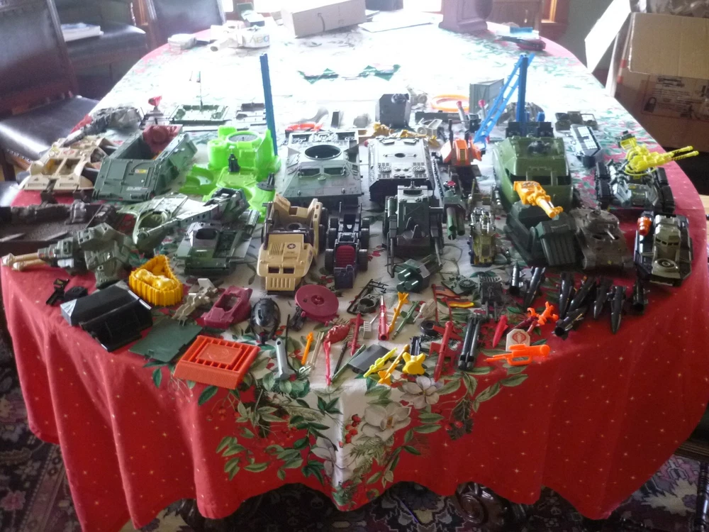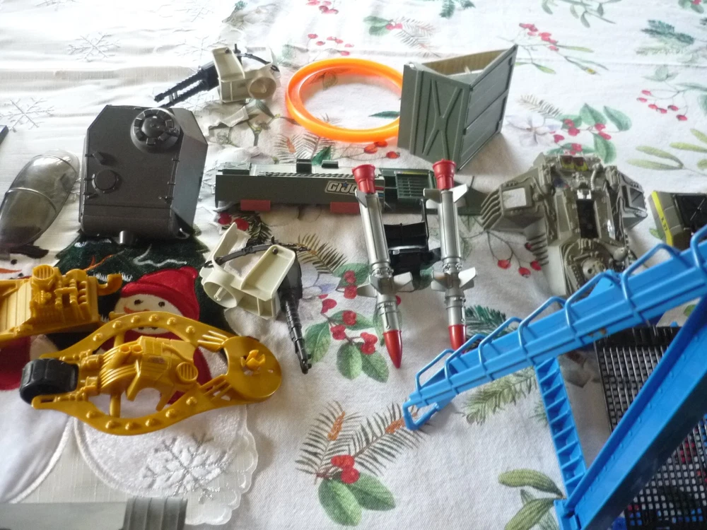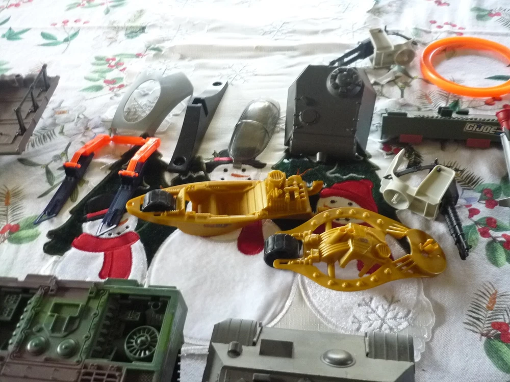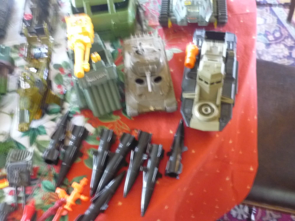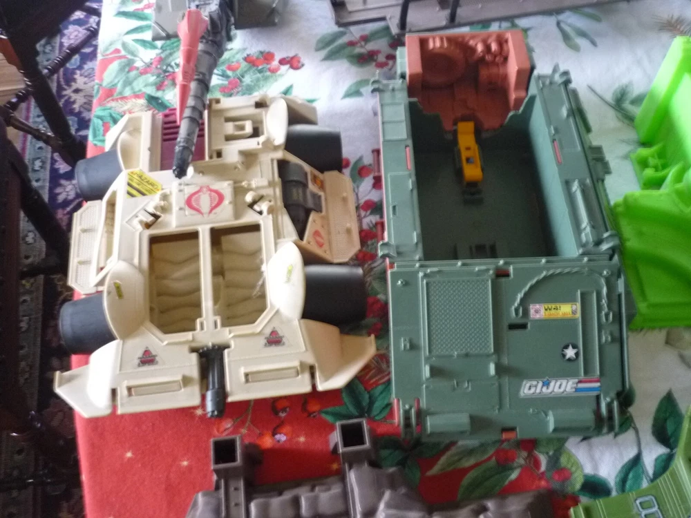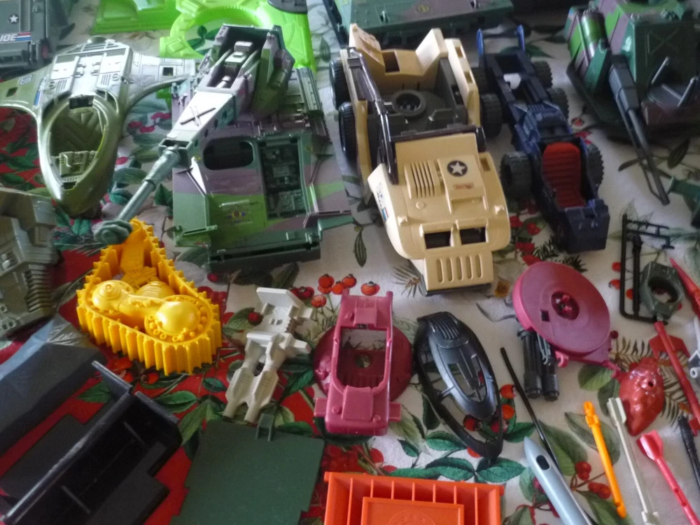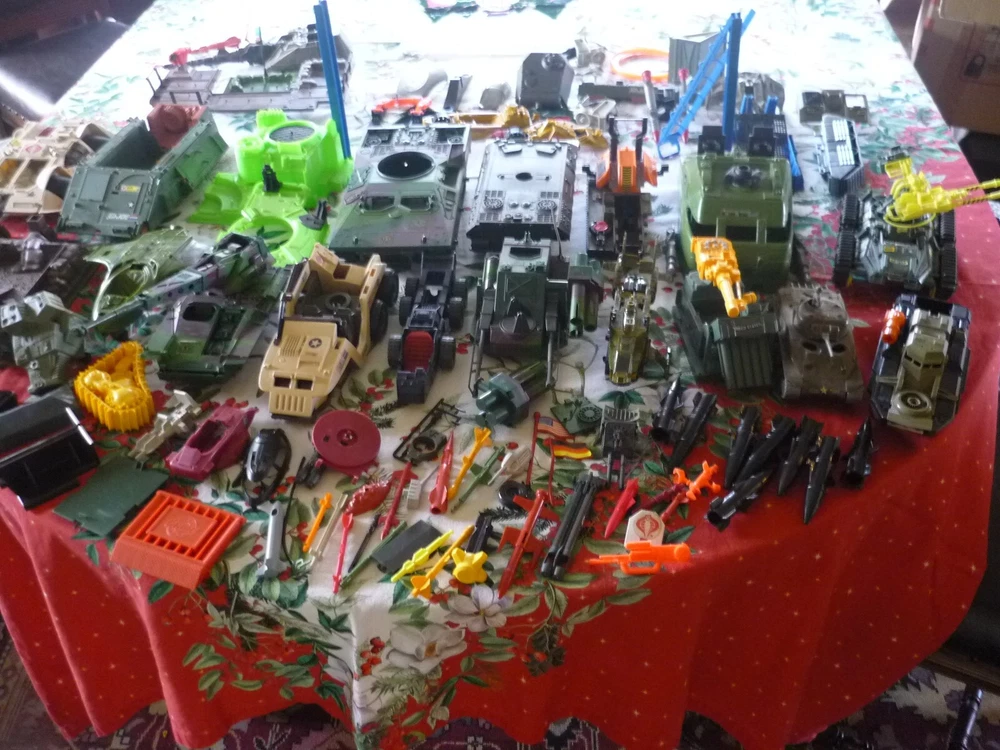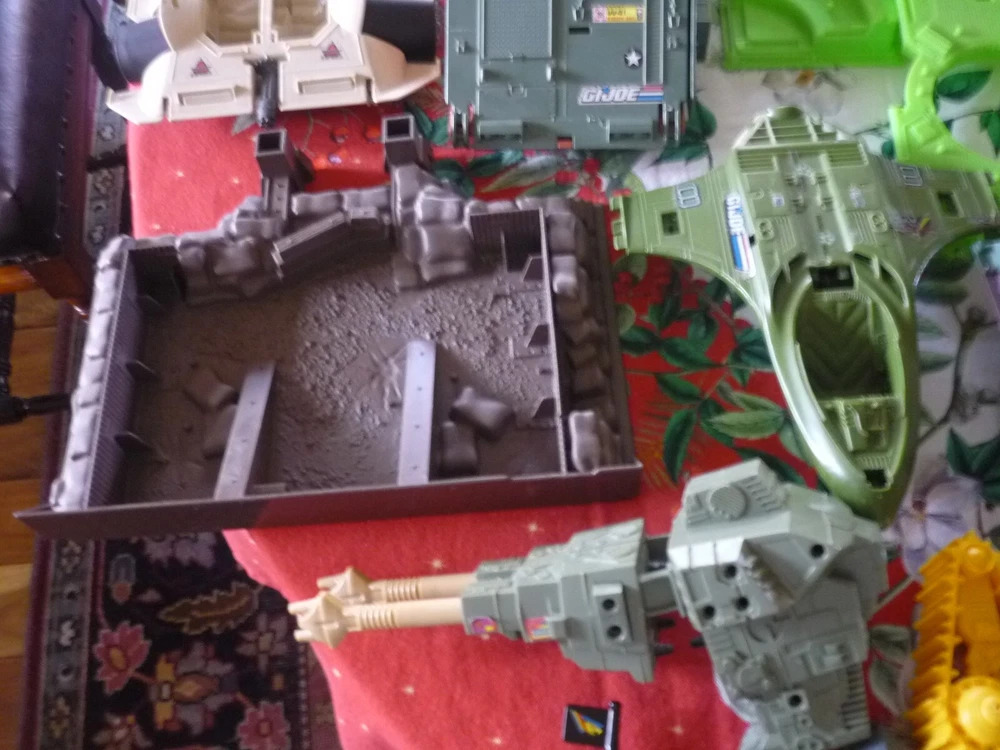 HERE IS A HUGE LOT OF GI JOE19 80'S-1990;S VEHICLES AND TANKS AND MISSILES AND AIRCRAFT AND PARTS. ALL NEED TO BE PUT TOGETHER AND ONE SMALL GREEN TANK IS NOT GI JOE. THERE IS TO MUCH TO LIST BUT YOU WILL GET ALL THAT IS IN THE PICTURES. NOT SURE HOW TO PUT THEM ALL TOGETHER. THERE MIGHT BE EXTRA PIECES OR SOME MIGHT BE MISSING. IT IS AMAZING LOT. 21 19 19 18