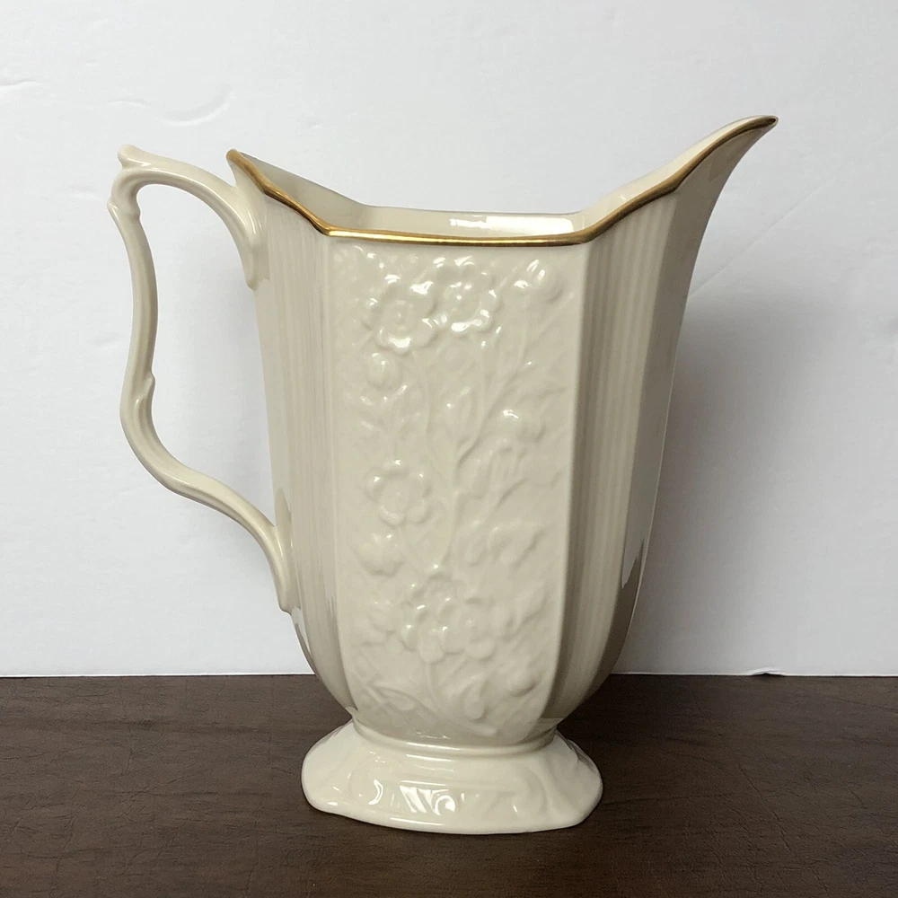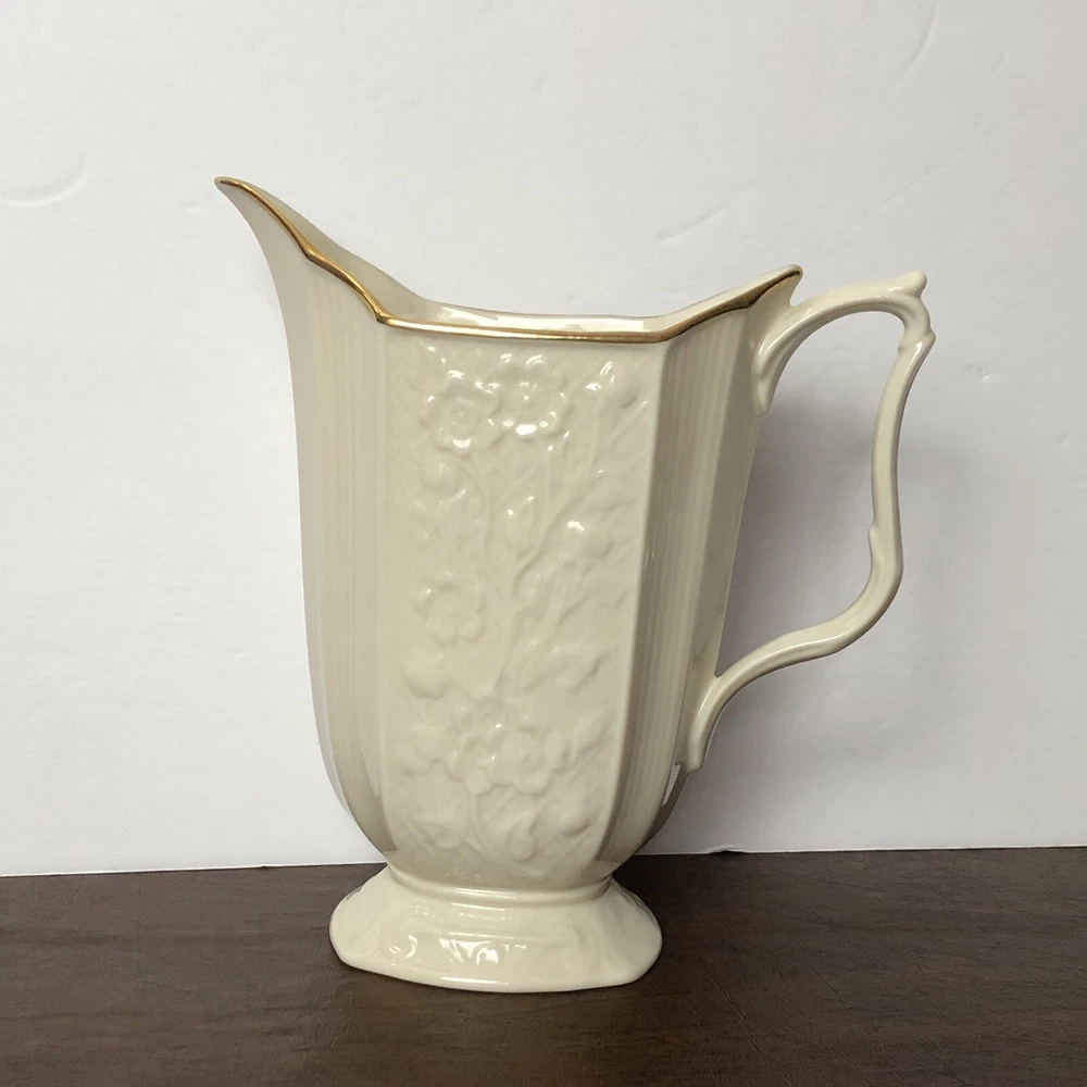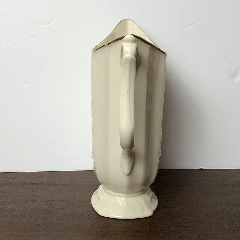 Vintage Lenox Pitcher Carolina Bisque Ivory Cream 24K Gold Trim Footed 7 1/2" Excellent pre-owned condition! No cracks or chips. Made in USA. Loose item does not come in original box! Thank you for stopping by!