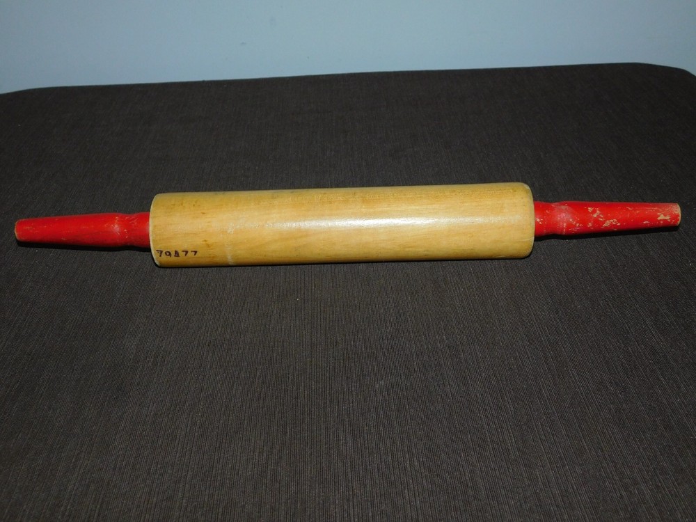 YOU ARE BIDDING ON..... VINTAGE KITCHEN 18" LONG RED WOOD ROLLING PIN . .. ..........SHOWS USAGE/AGE WEAR..HAS SCRATCHES/SCUFFS/STAINS/AGE DISCOLORATION.....PLEASE LOOK CLOSELY... PLEASE VIEW PHOTOS FOR CONDITION.***PLEASE E-MAIL IF YOU HAVE A QUESTION OR WANT AN ADDITIONAL PICTURE....PLEASE VISIT MY EBAY STORE FOR ADDITIONAL VINTAGE ITEMS..THANK YOU***1W-BX0492-XXXX