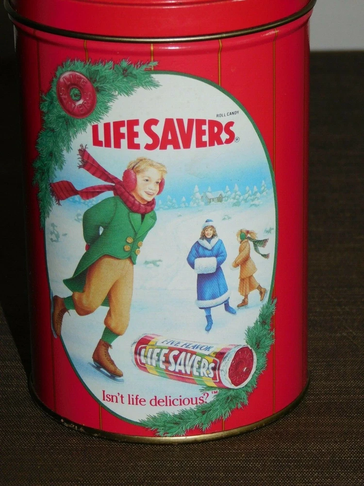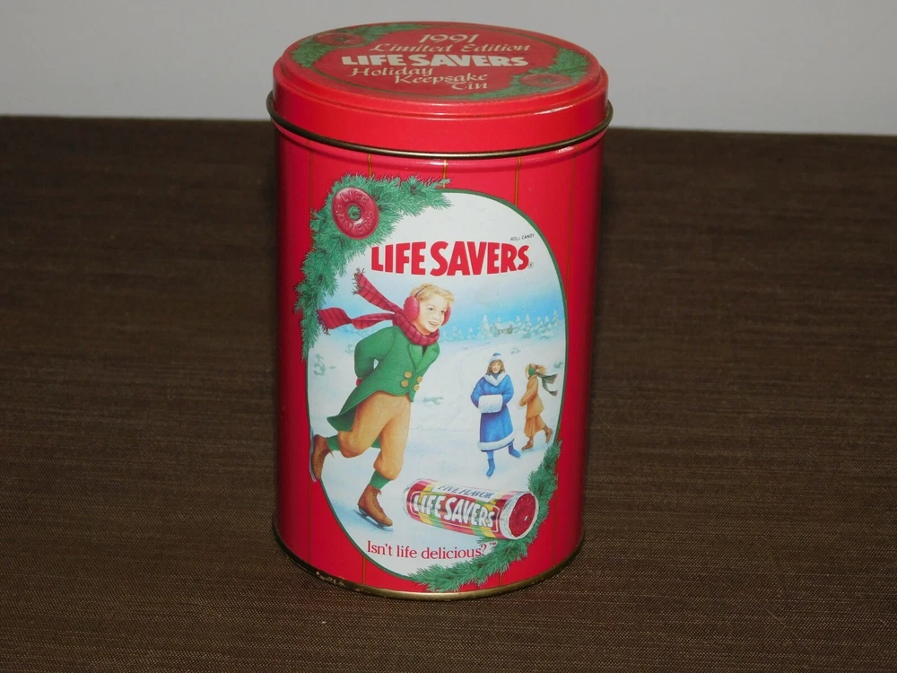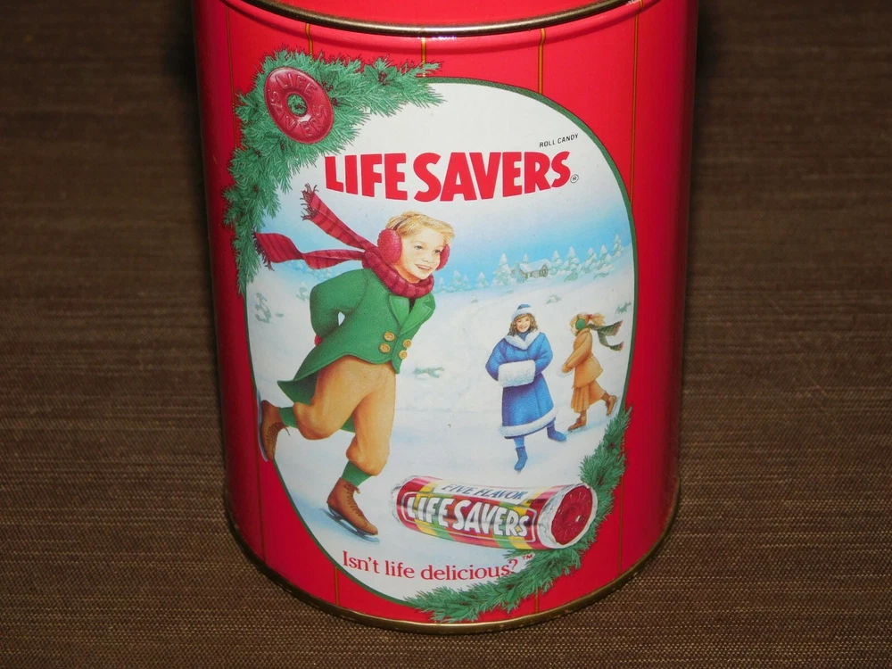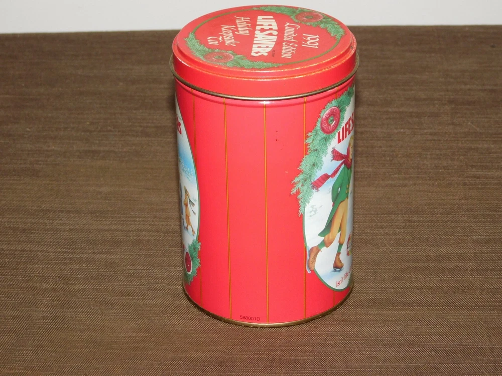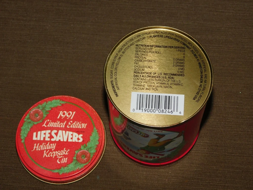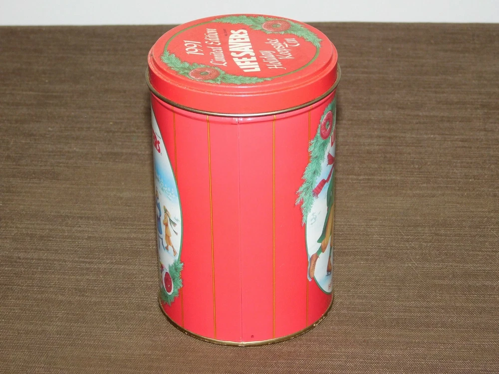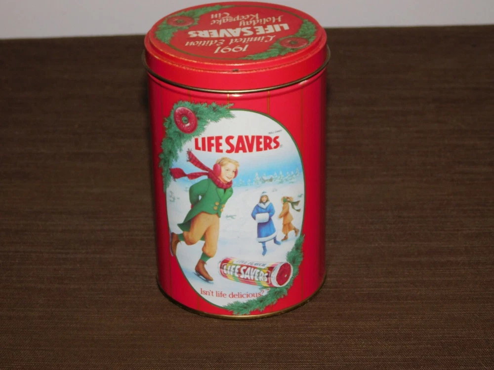 YOU ARE BIDDING ON............... .. VINTAGE KITCHEN 5 1/2" HIGH 1991 LIFESAVERS CANDY LIMITED EDITION TIN CAN *EMPTY .. ..MEASURES APPROX 5 1/2" HIGH... .SHOWS SOME USAGE/AGE WEAR..HAS SCRATCHES/PAINT LOSS/AGE DISCOLORATION .. ... PLEASE VIEW PHOTOS FOR CONDITION.***PLEASE E-MAIL IF YOU HAVE A QUESTION OR WANT AN ADDITIONAL PICTURE....PLEASE VISIT MY EBAY STORE FOR ADDITIONAL VINTAGE ITEMS..THANK YOU***11SBX0492-XXXX