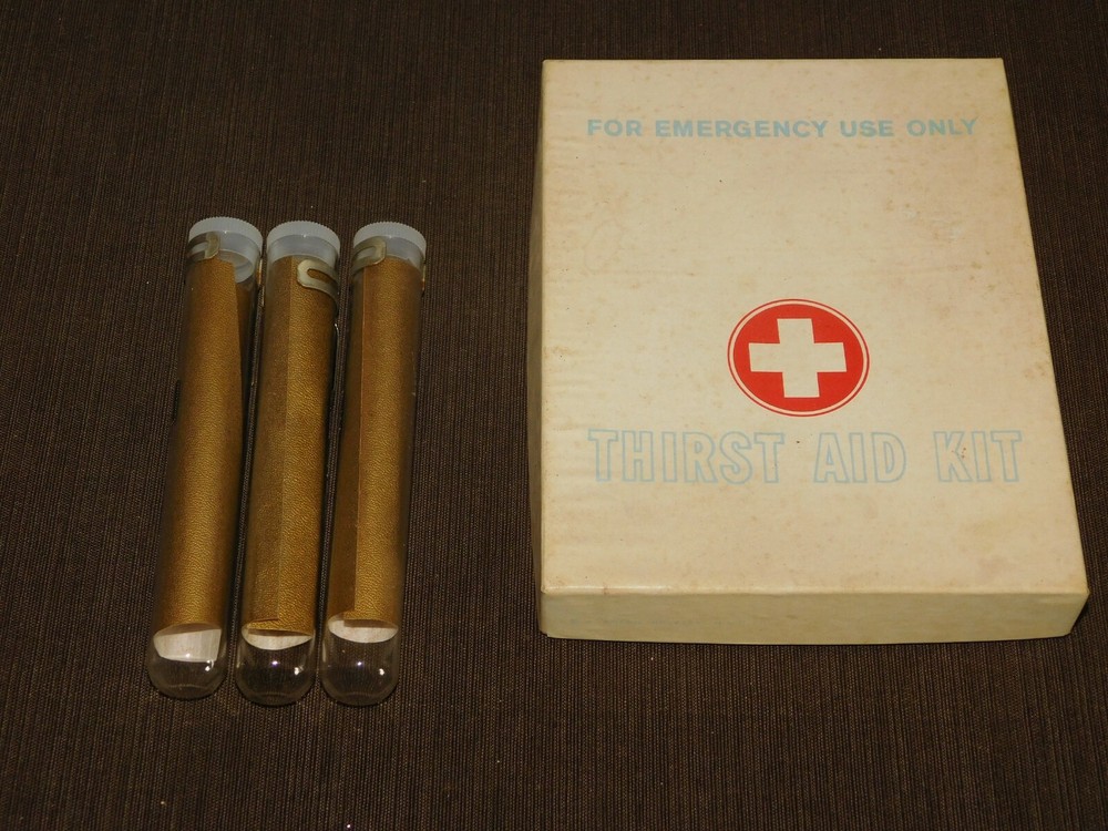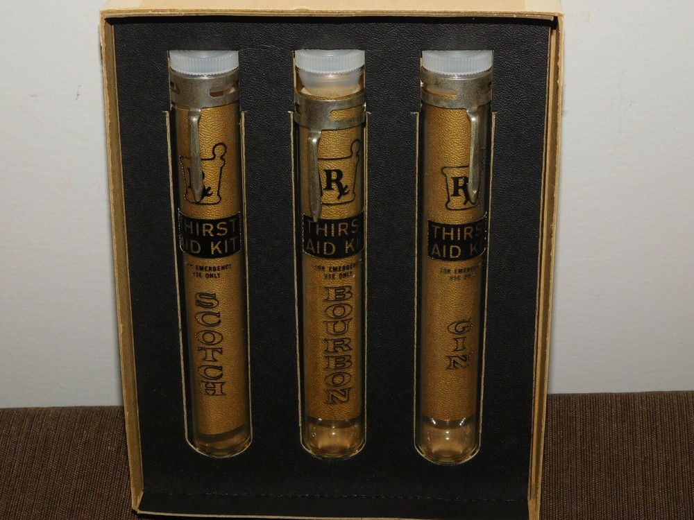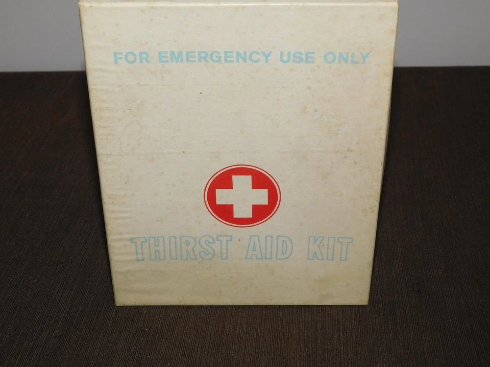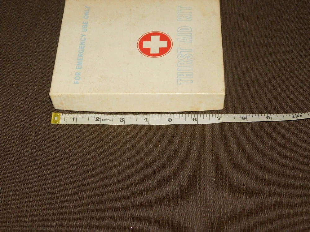 YOU ARE BIDDING ON..... VINTAGE KITCHEN BAR LIQUOR FUNNY GAG GIFT FOR EMERGENCY USE ONLY THIRST AID KIT ..... .. ...CONTAINS NO LIQUOR.... SHOWS SOME HANDLING/AGE WEAR..BOX HAS AGE DISCOLORATION..INSIDE GAG IS IN GOOD CONDITION ...PLEASE VIEW PHOTOS FOR CONDITION.***PLEASE E-MAIL IF YOU HAVE A QUESTION OR WANT AN ADDITIONAL PICTURE....PLEASE VISIT MY EBAY STORE FOR ADDITIONAL VINTAGE ITEMS..THANK YOU***10U-BX1103-XXXX