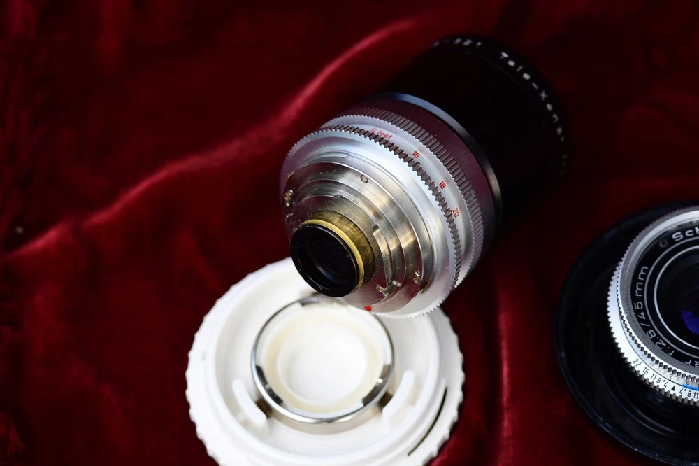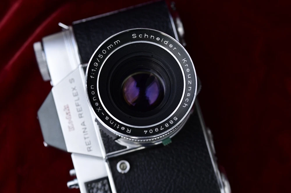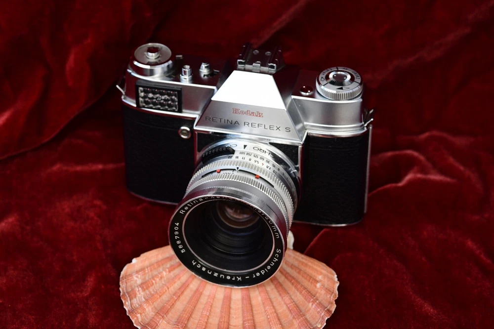 NICE VINTAGE GERMAN MADE KODAK RETINA REFLEX S WITH 3 LENS ~ A LENS HOOD FOR THE 135 AND A RIGHT ANGLE FINDER ~ CAMERA HAS A SCHNEIDER XENON 50MM 1.9 LENS ~ TWO EXTRA LENS ARE XENAR 45 MM 2.8 & A TELE-XENAR 135MM F 4 IN BUBBLES ~ ALL LENS CLEAN ~ THE ONLY ISSUE WITH THIS CAMERA IT NEEDS A SERVICE AS SHUTTER IS STICKING ~ BLADES OPEN AND SHUTTER WORKS BUT STICK OPEN HALF WAY ALOT AND OPEN WHEN COCKED AGAIN..BEEN SITTING FOR YEARS ~ SELENIUM METER WORKING ~ STILL A GREAT PACKAGE