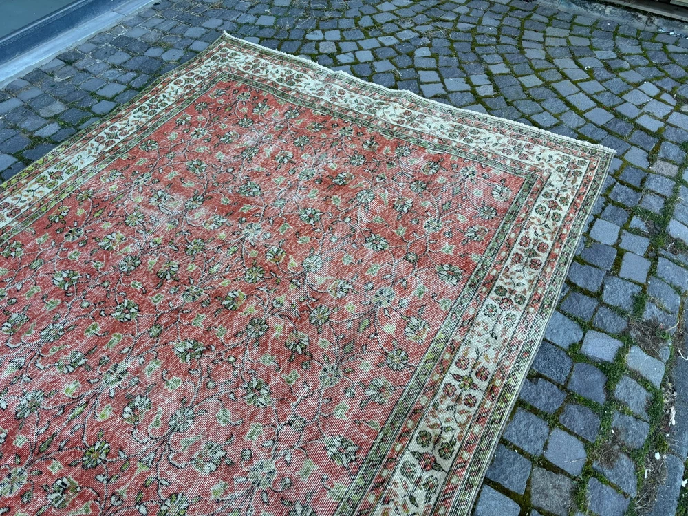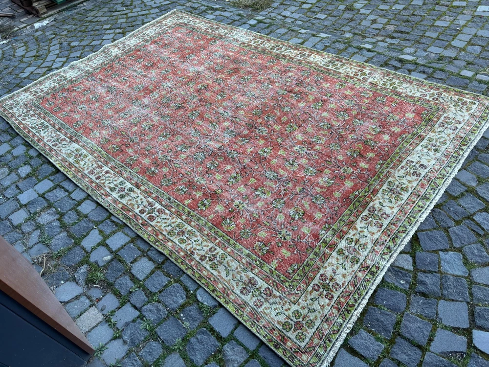 An old (approximately 45-60 years old) hand knotted / hand woven Turkish rug from the Middle Anatolian Region and made of genuine, high quality wool, in natural colors. Our distinguished Antiques and Vintage rugs, each with its own unique story, have been carefully selected from every corner of Turkey. RUG DETAILS * One-of-a-kind vintage rug * Dimensions: 6,6 x 9,9 ft = 80 x 119 inc = 203 x 303 cm * Low pile: approximately 0.2"(0.5 cm) * Dyed with natural dyes * Product code : LY 033 SHIPPING * Free shipping on all items. * Usually shipped via FedEx or UPS. * Item will be ready for shipment within * Estimated delivery 3-5 business days 1-3 business days with a tracking number. All of our rugs have been professionally cleaned and ready to ship before being listed. These unique vintage rugs have normal wear related to their age. We believe this adds to the authenticity of these hand-woven beauties. We inspect all rugs carefully before Shipping, but in the unlikely event that due to our fault, the goods are not fit for purpose, damaged/defective, or we ship the wrong item, we will issue a 100% refund. We are a team of experienced professionals who are dedicated to ensuring your items arrive safely. Please note that our photos accurately represent the colors of the rug, however it may look different in the light in your home or against different colored floors. We are so excited to share the beauty and art of rugs with you and to see how your personal spaces transform! I do my best to build a great experience in online rug shopping for you, just look at the reviews. Please feel free to write me over conversation if you have any questions about the rug or price. I will be happy to answer to you. Thank you, Yusuf.