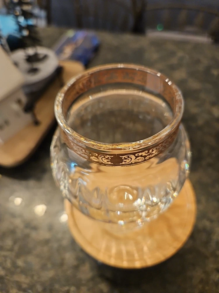 Elevate your home decor with the timeless elegance of the Vintage Lenox Autumn Crystal Vase. Adorned with a 24K gold band, this medium-sized vase boasts a hand-blown crystal finish, exuding a traditional charm that complements any room's aesthetic. The clear crystal, accented with a sophisticated gold trim, offers a glimpse into the exquisite craftsmanship from the 1980s, when each piece was meticulously crafted in the United States. Ideal for collectors and decorators alike, this vase is a testament to Lenox's commitment to quality and style. The vase, which is signed and features the iconic 'Crystals' line from Lenox, stands as a unique piece that harmonizes with both contemporary and classic ensembles. Whether displayed alone or as part of a curated collection, it brings a touch of luxury and heritage to your space. 5.5in tall