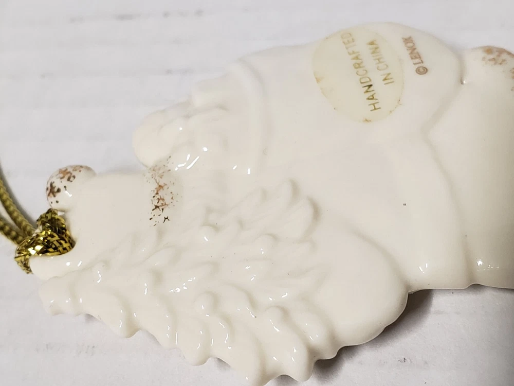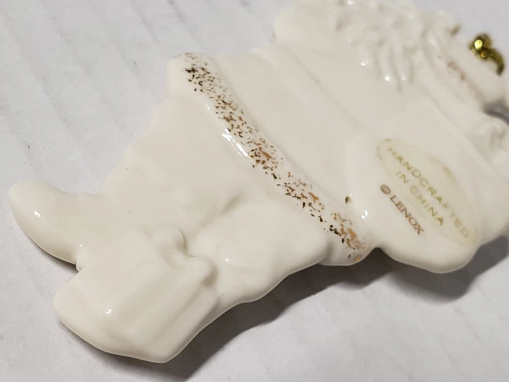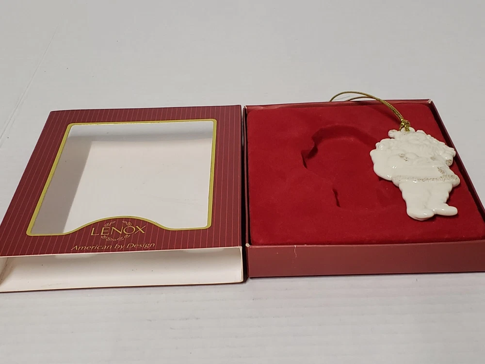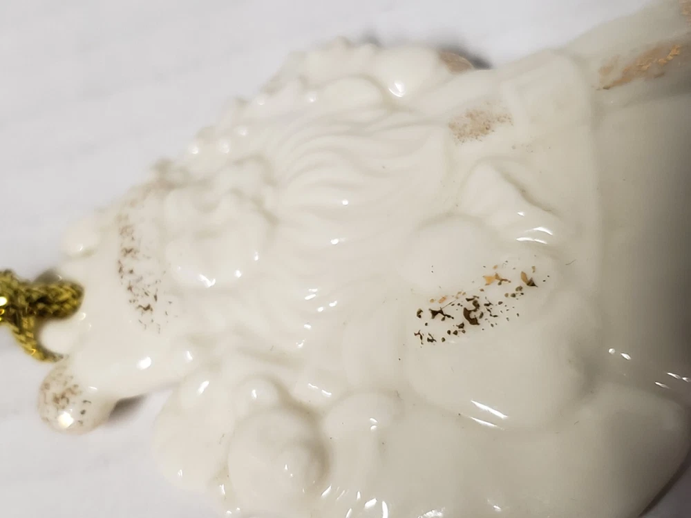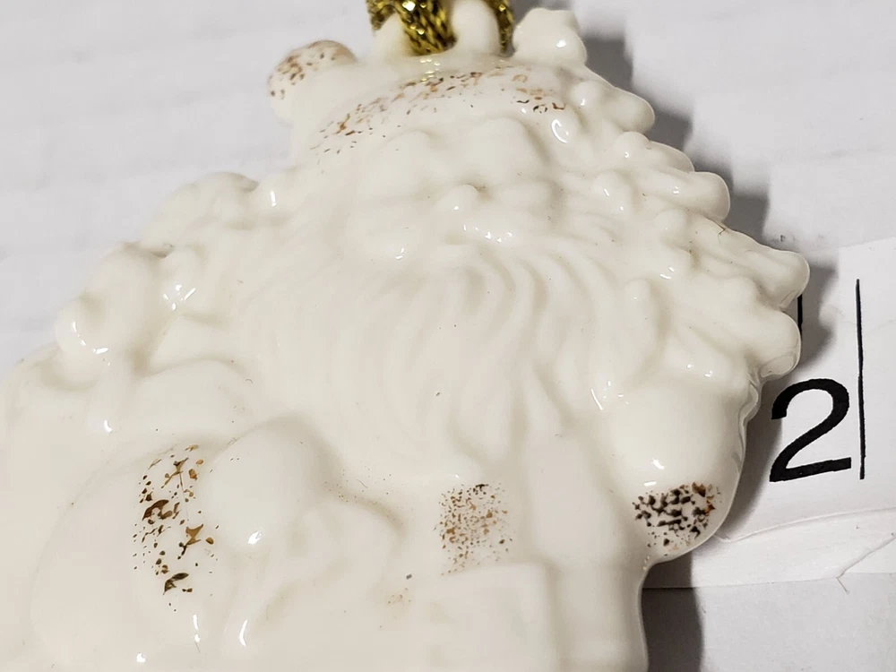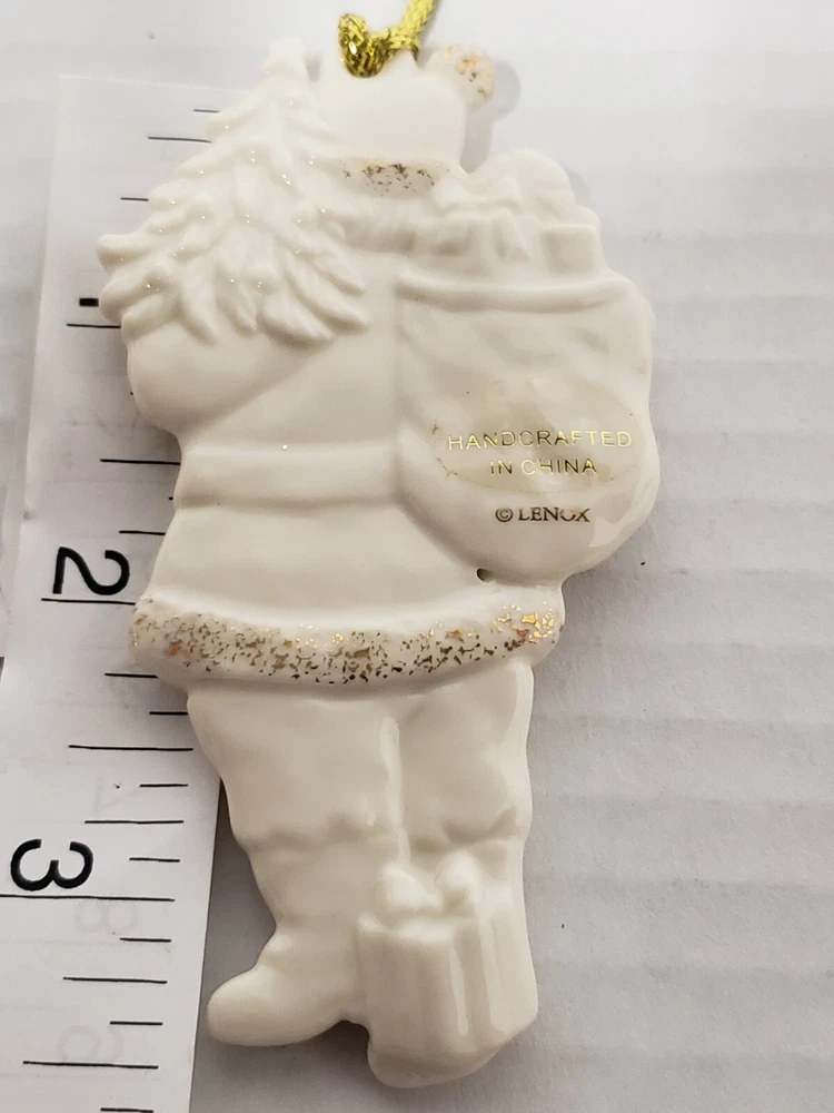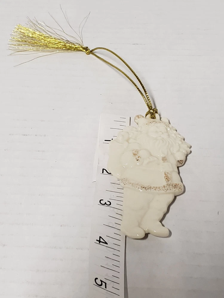 VINTAGE LENOX PORCELAIN IVORY SANTA WITH GOLD GLITTER & TASSEL ORIGINALBOX/TAGS. Owner never used. Could give as a gift as brand new. No damage to box or ornament. All tags/stickers intact.
