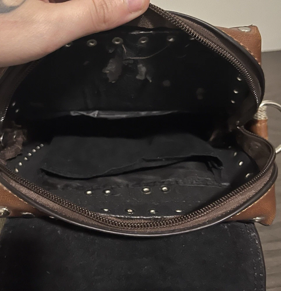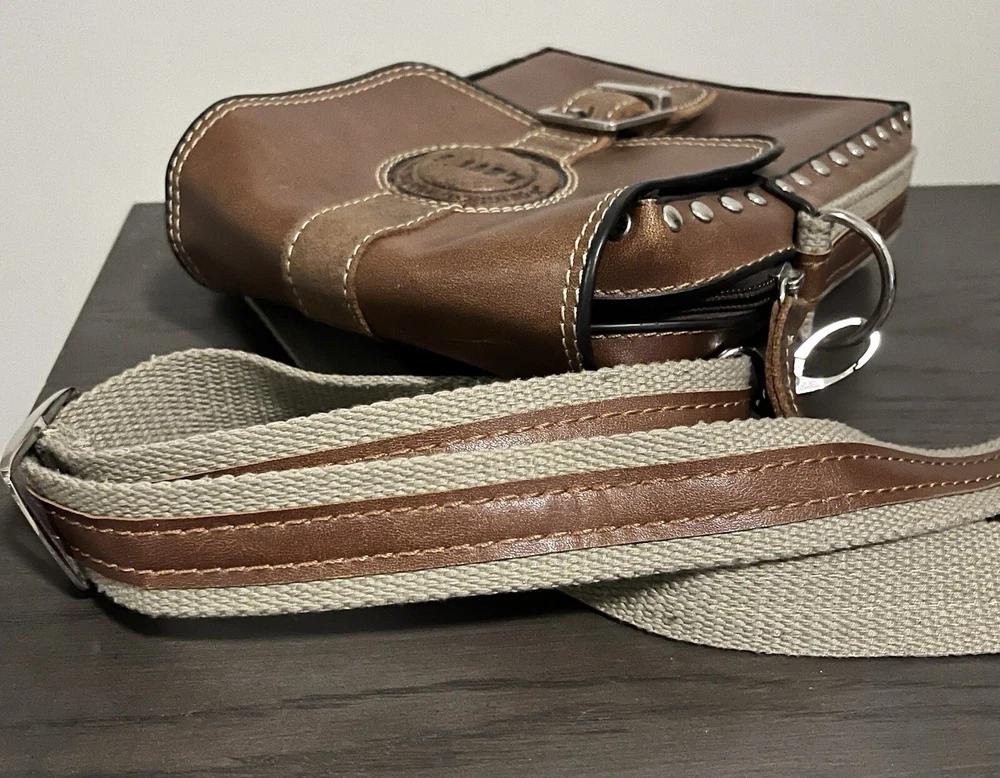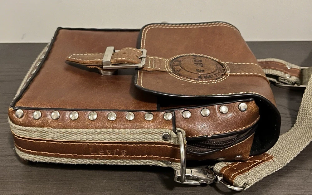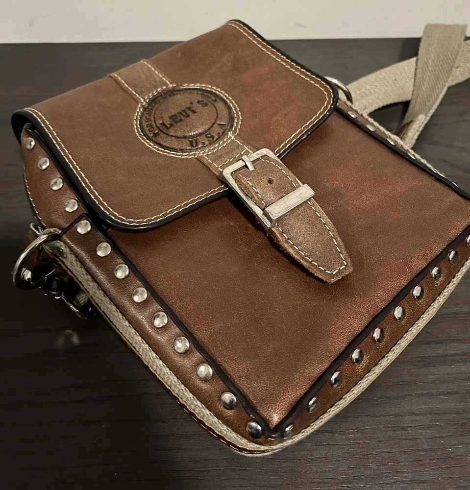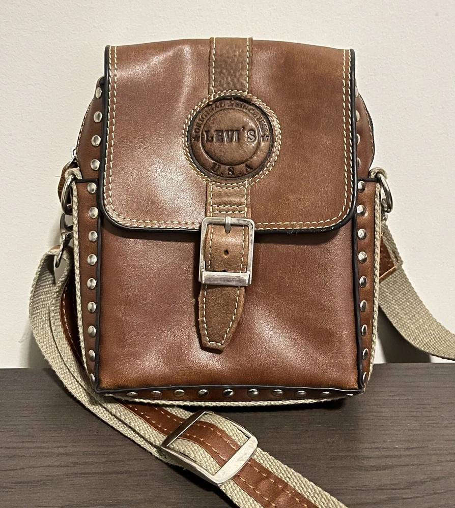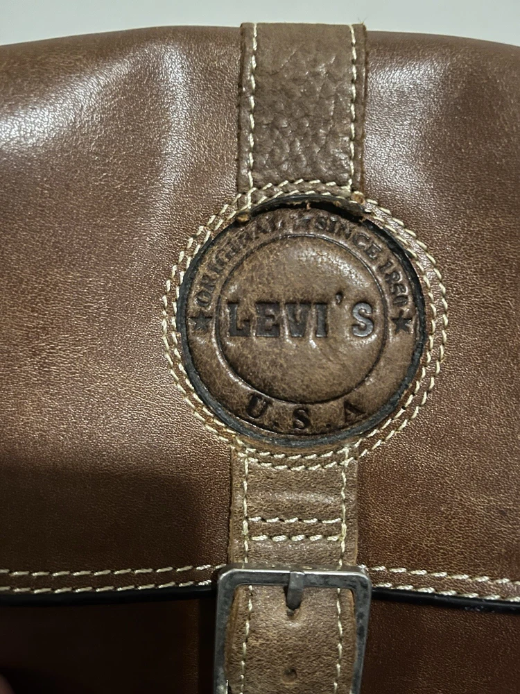 VINTAGE LEVIS BROWN LEATHER SMALL SHOULDER BAG IN GOOD PRE OWNED CONDITION OUTER BAG IS IN VERY GOOD CONDITION WITH LIGHT SIGNS OF USE/WEAR BUT NOTHING MAJOR INSIDE OF THE BAG HAS SOME WEAR - REFER TO THE PHOTOS MEASURES APPROX 25CM X 20CM COMES ON ITS OWN
