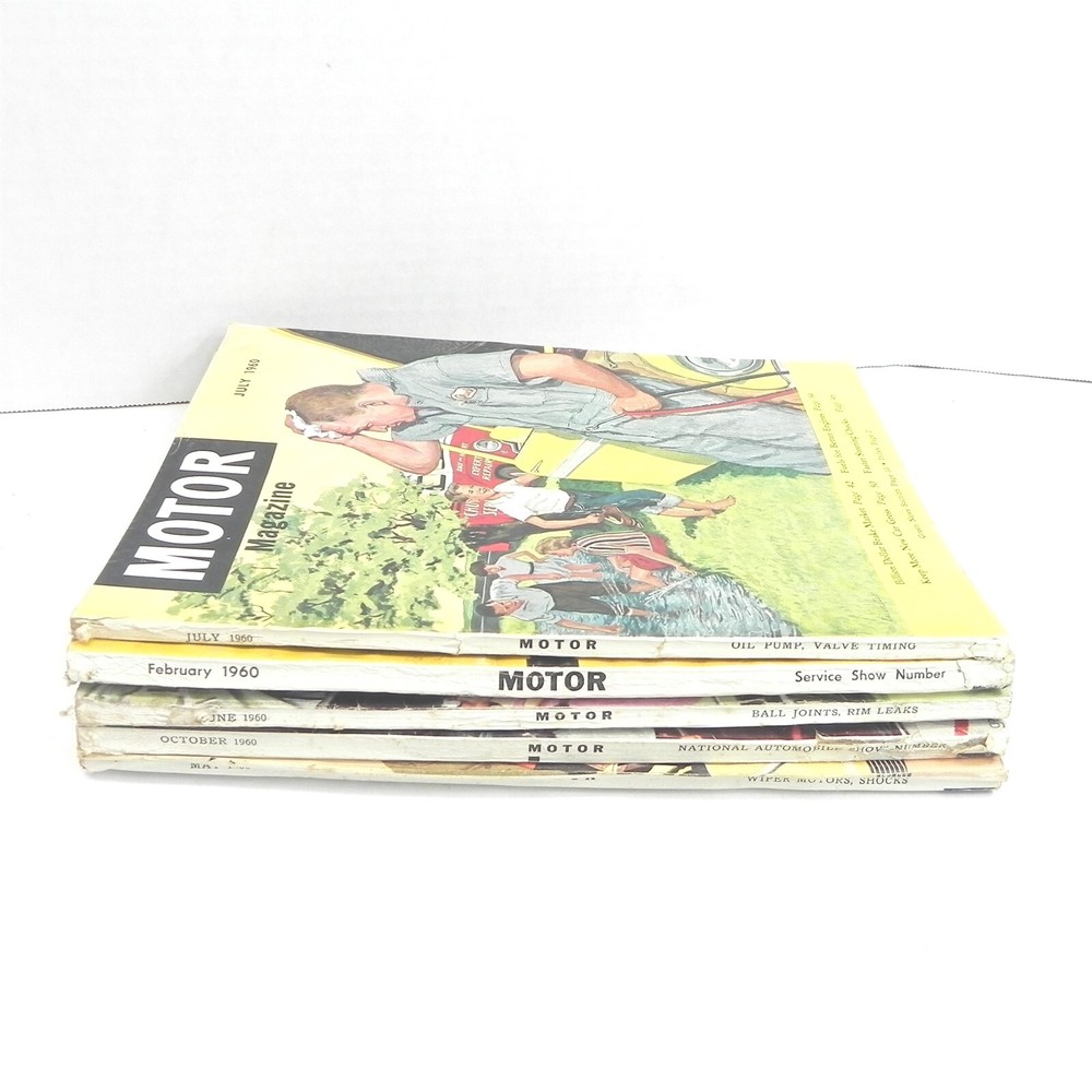 VINTAGE LOT OF 5 MOTOR MAGAZINE 1960 FEBRUARY MAY JUNE JULY OCTOBER CARS NICE CONDITION VINTAGE LOT OF 5 MOTOR MAGAZINE 1960 FEBRUARY MAY JUNE JULY OCTOBER CARS NICE CONDITION See photos below for details. Contents included will be pictured. ABOUT US Jones Vintage Parts has been a family-owned business for over 40 years. We specialize in rare and vintage NOS and used parts for all makes and models from the teens to the 70s. We're passionate about uncovering and restoring the stories of the treasures from your grandparents and great grandparents history. We believe in breathing new life into the world's first modes of transportation. New vintage all the time! SHIPPING INFORMATION Purchased items will generally ship Monday through Friday, within 3 days via USPS Flat Rate or First Class upon payment receipt. Larger items will be shipped via FedEx Ground or UPS. Multiple same-day purchases will be combined for discounted shipping (request a revised invoice to receive bulk shipping discount or notify us of future purchases). International shipping also available. RETURN POLICY Our goal is your satisfaction. If you are unhappy with your order for any reason items may be returned for parts credit within three (3) days of receipt, and you will be charged a 10% restocking fee. There are no shipping refunds. Exchanges will be billed appropriate freight. All return items must be complete, undamaged, unaltered and in resale condition. You may be interested in our other eBay listings . Powered by SixBit's eCommerce Solution