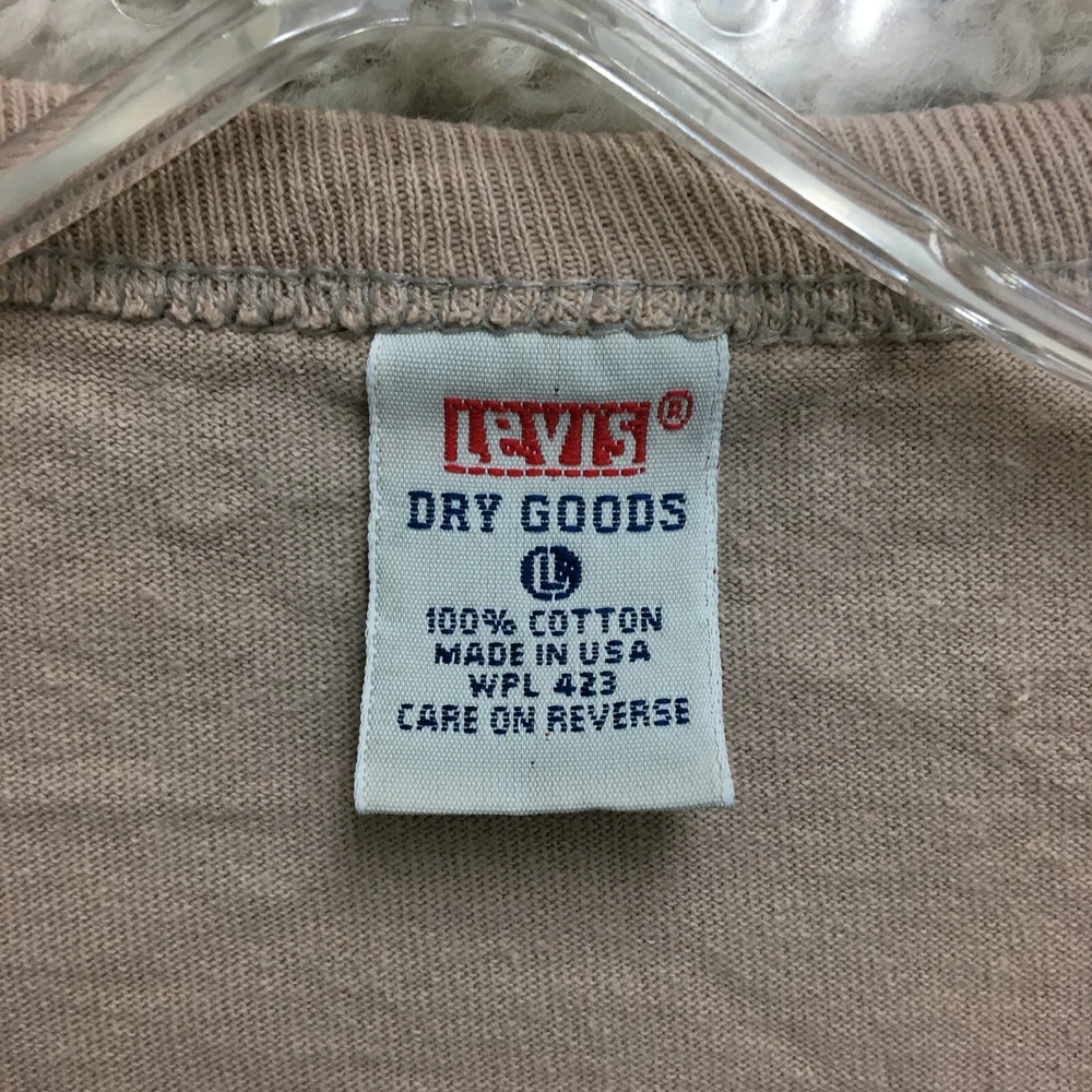Accents: Logo Garment Care: Machine Washable Neckline: Crew Neck Color: Beige Size: L Theme: Classic Season: Fall, Spring, Summer, Winter Department: Men Fit: Regular Seller Notes: “Good Used Condition. Please, See Pictures for Full Condition and Measurements.” Sleeve Length: Short Sleeve Vintage: Yes Pattern: Solid Features: All Seasons, Breathable, Easy Care Country/Region of Manufacture: United States Material: Cotton Type: T-Shirt Fabric Type: Knit Brand: Levi's Size Type: Regular