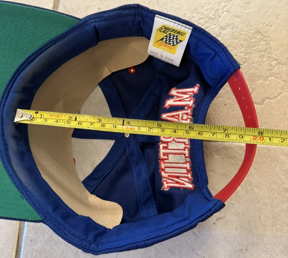 Size:adjustableGender:Unisex AdultOfficially Licensed:YesDriver:Mark MartinSport:RacingColor:BlueBrand:checkered flagCountry of Origin:MalaysiaProduct:Cap, Hat
