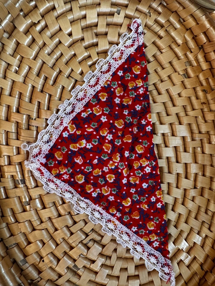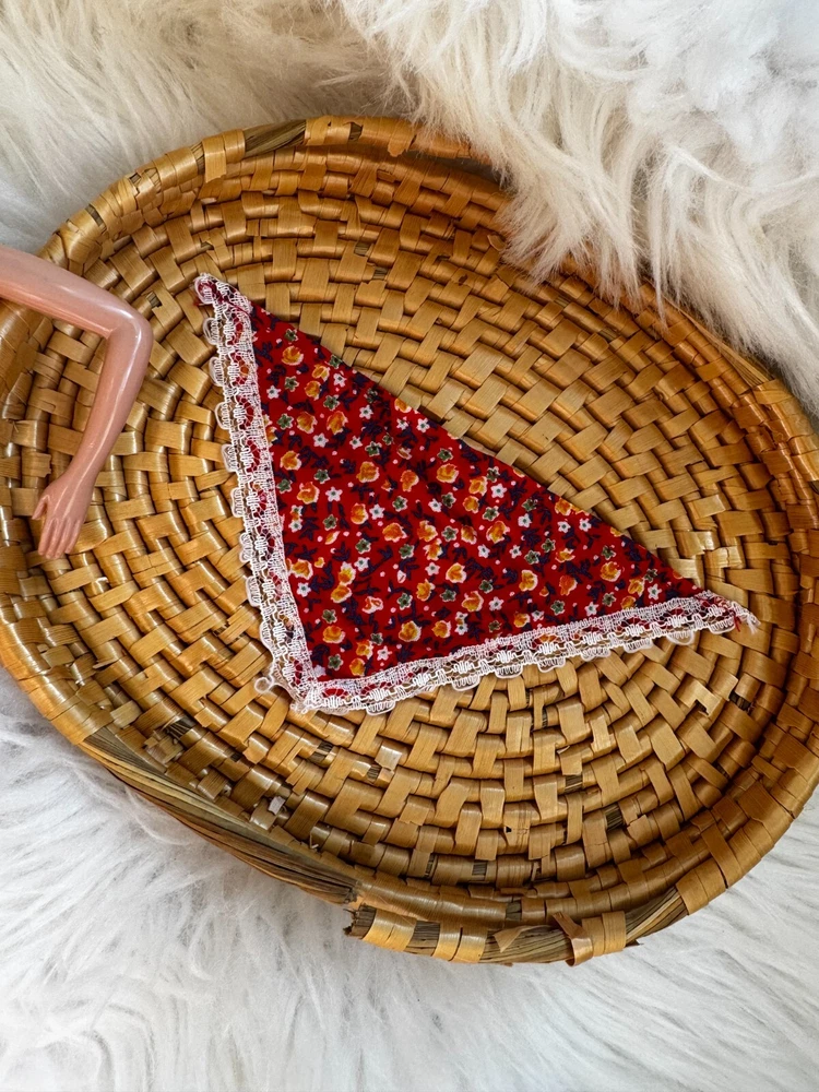 VINTAGE MATTEL BARBIE DOLL RED FLORAL BANDANA PRINT HEAD SCARF ACCESSORY 1970S