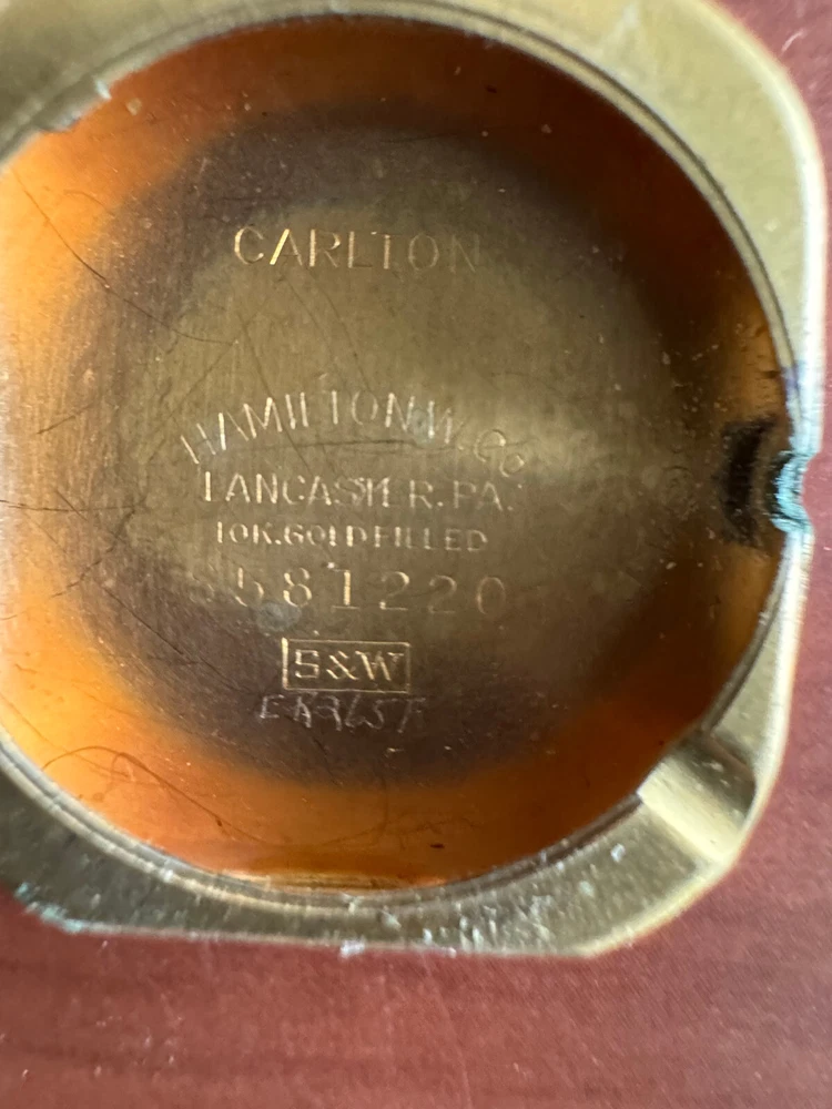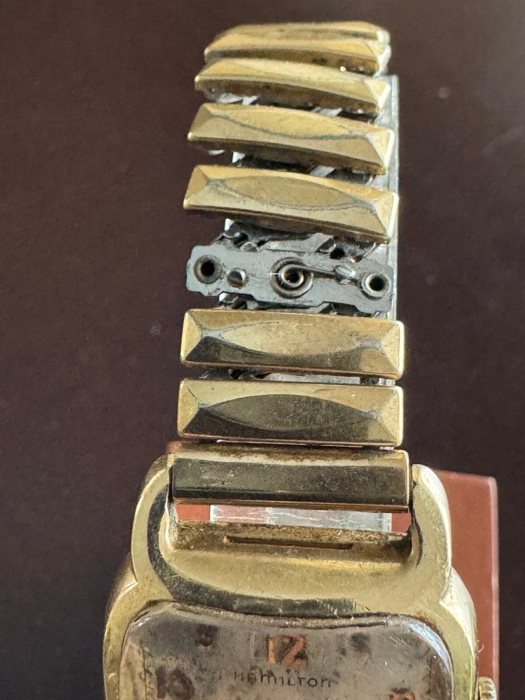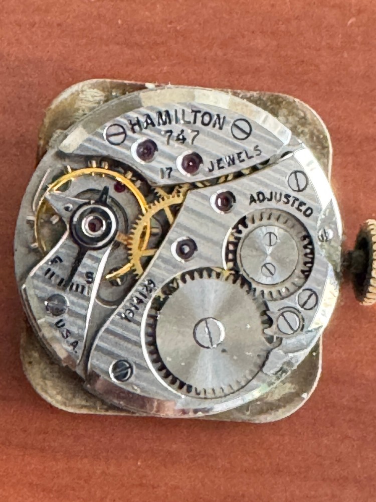VINTAGE MEN'S HAMILTON CARLTON WRIST WATCH CAL. 747 KEEPING TIME 17 JEWEL CASE WIDTH MEASUREMENT WITHOUT CROWN: 25.65MM CASE: 36.42MM LUG TO LUG, 10K YELLOW GOLD FILLED S&W , HAS WEAR BAND: STRETCH BAND , HAS WEAR THROUGH AND MISSING A LINK CAP AS SEEN IN PICTURE 16MM BETWEEN LUGS CRYSTAL:HAS A LOT OF SCRATCHES DIAL: HAS WEAR MOVEMENT: MANUAL WIND, KEEPING TIME, CAL. 747, 17 JEWEL Remember to save us on your FAVORITE SELLERS list! YOUR FEEDBACK IS VERY IMPORTANT TO US! Please take a short time to tell us how we are doing! It's our goal to maintain high customer satisfaction rating If you have any questions, comments or concerns, please don't hesitate to contact us We will do our very best to be prompt to answering your questions ARE YOU NOT SATISFIED WITH THE TRANSACTION?? Before leaving us negative feedback, please contact us! We may be able to come up with a solution that will please both of us! Thank you and please visit our eBay store again! NDD SALES, INC Return Policy: Returns accepted up to 14 days. The buyer is responsible for return shipping charges. No returns on watches stated as new. Payment Information: We accept payment by PayPal only. International Buyers: Buyer is responsible for any customs fees or duties incurred by their country based on their country's rules and regulations. No exceptions!