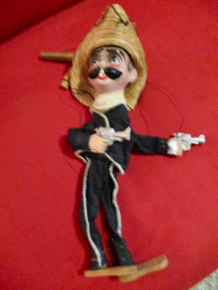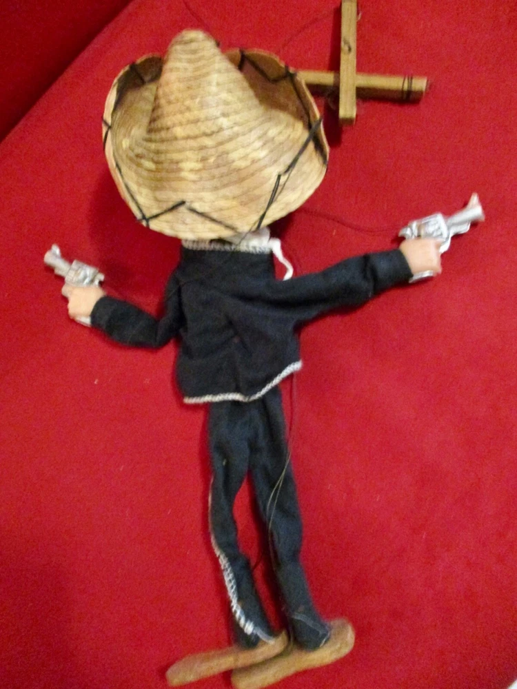 VINTAGE MEXICAN BANDIDO MARIONETTE PUPPET With GUNS FOLK ART