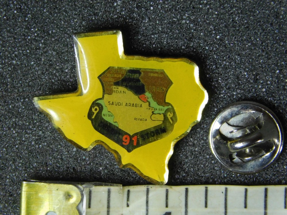 YOU ARE BIDDING ON..... VINTAGE MILITARY PIN DESERT STORM 91 MIDDLE EAST MAP ......SOME HANDLING/AGE WEAR.. ... PLEASE LOOK CLOSELY... PLEASE VIEW PHOTOS FOR CONDITION...***PLEASE E-MAIL IF YOU HAVE A QUESTION OR WANT AN ADDITIONAL PICTURE....PLEASE VISIT MY EBAY STORE FOR ADDITIONA VINTAGE ITEMS..THANK YOU***2W-BX9119-0006