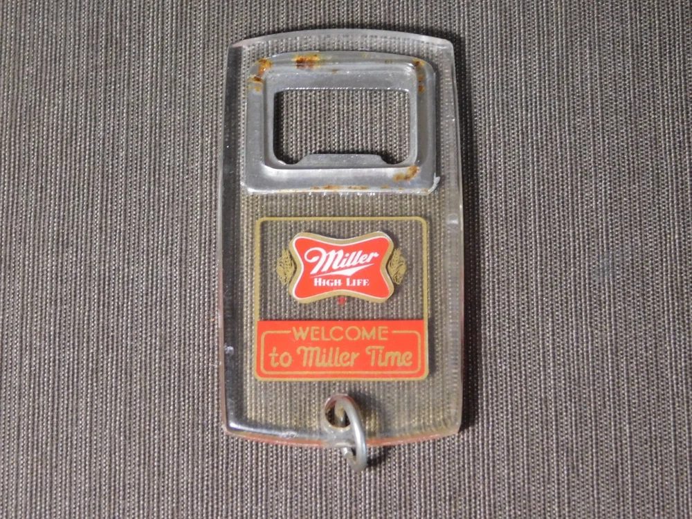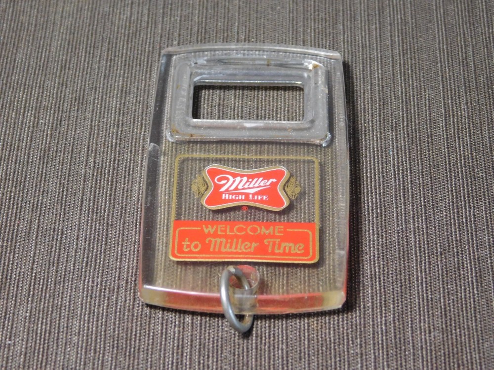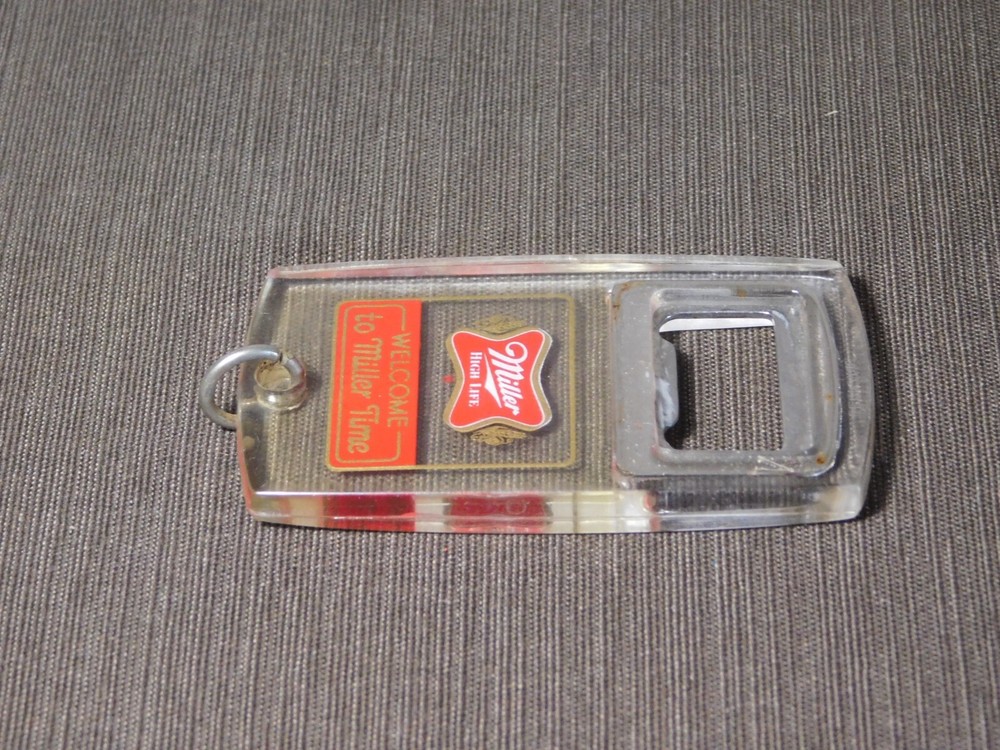YOU ARE BIDDING ON..... VINTAGE MILLER HIGH LIFE KEYCHAIN BEER BOTTLE OPENER .SHOWS USAGE/AGE WEAR HAS SCRATCHES/FEW NICKS/RUST SPOTS/AGE DISCOLORATION.. ... PLEASE VIEW PHOTOS FOR CONDITION.***PLEASE E-MAIL IF YOU HAVE A QUESTION OR WANT AN ADDITIONAL PICTURE....PLEASE VISIT MY EBAY STORE FOR ADDITIONAL VINTAGE ITEMS..THANK YOU***11W-BX4848-prbg4949