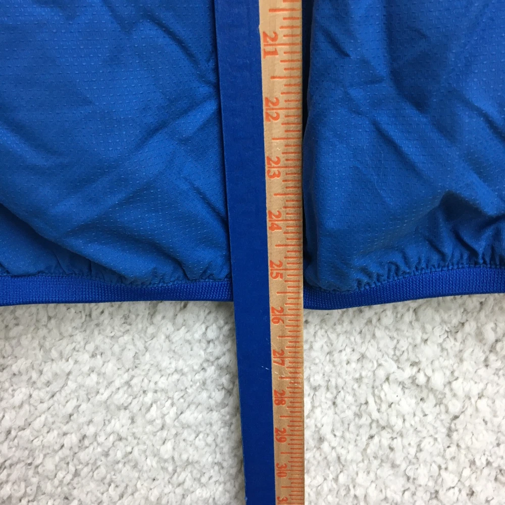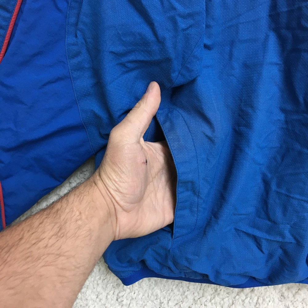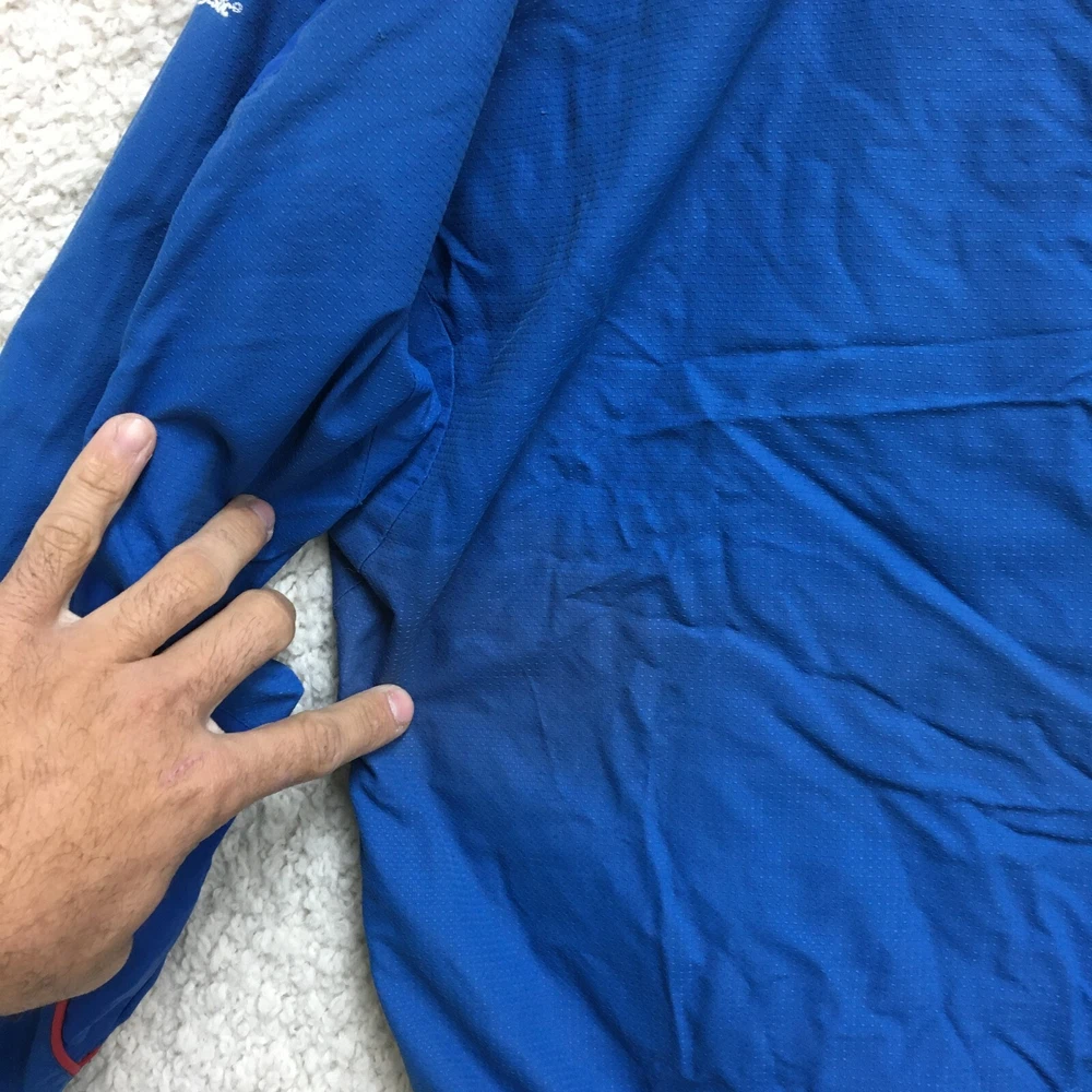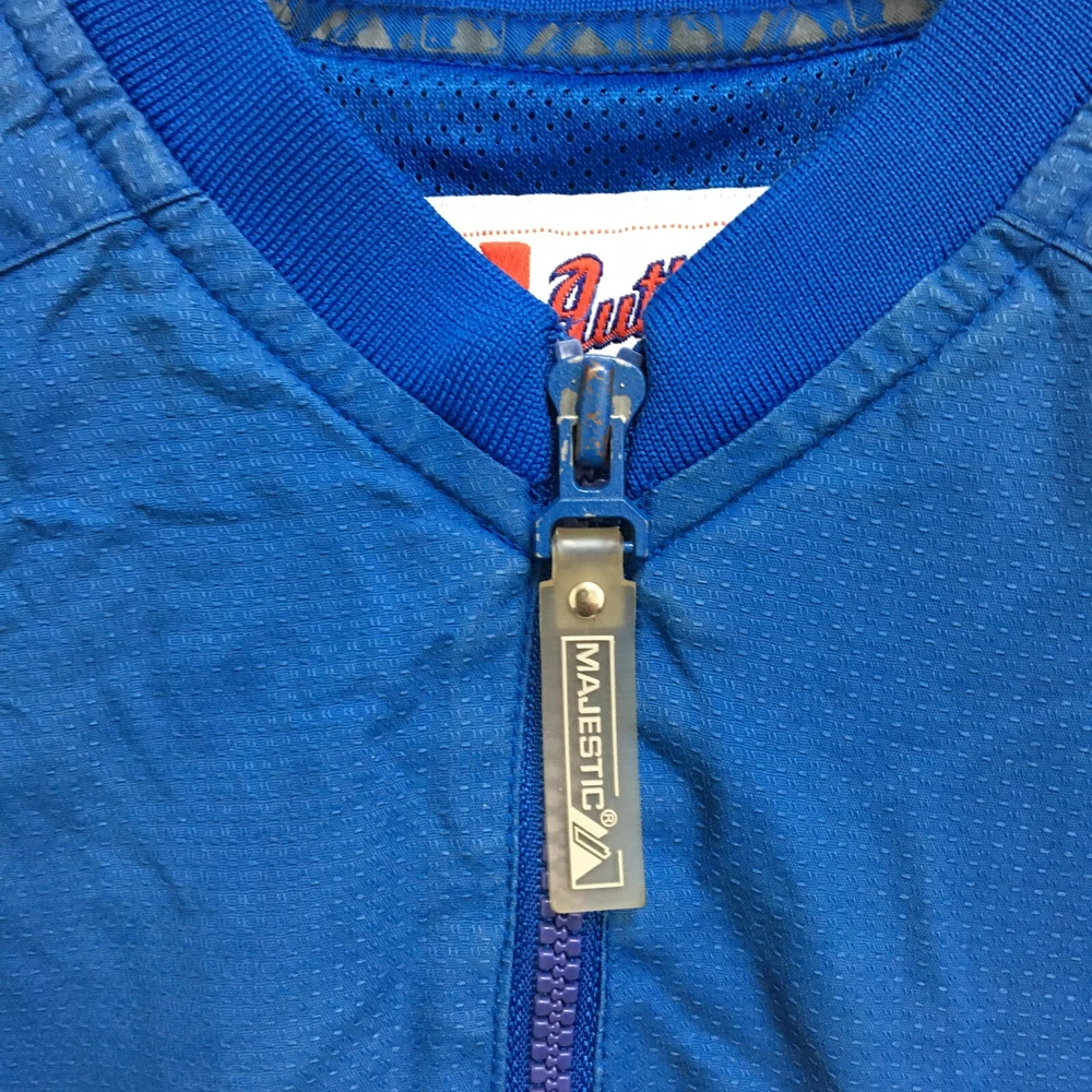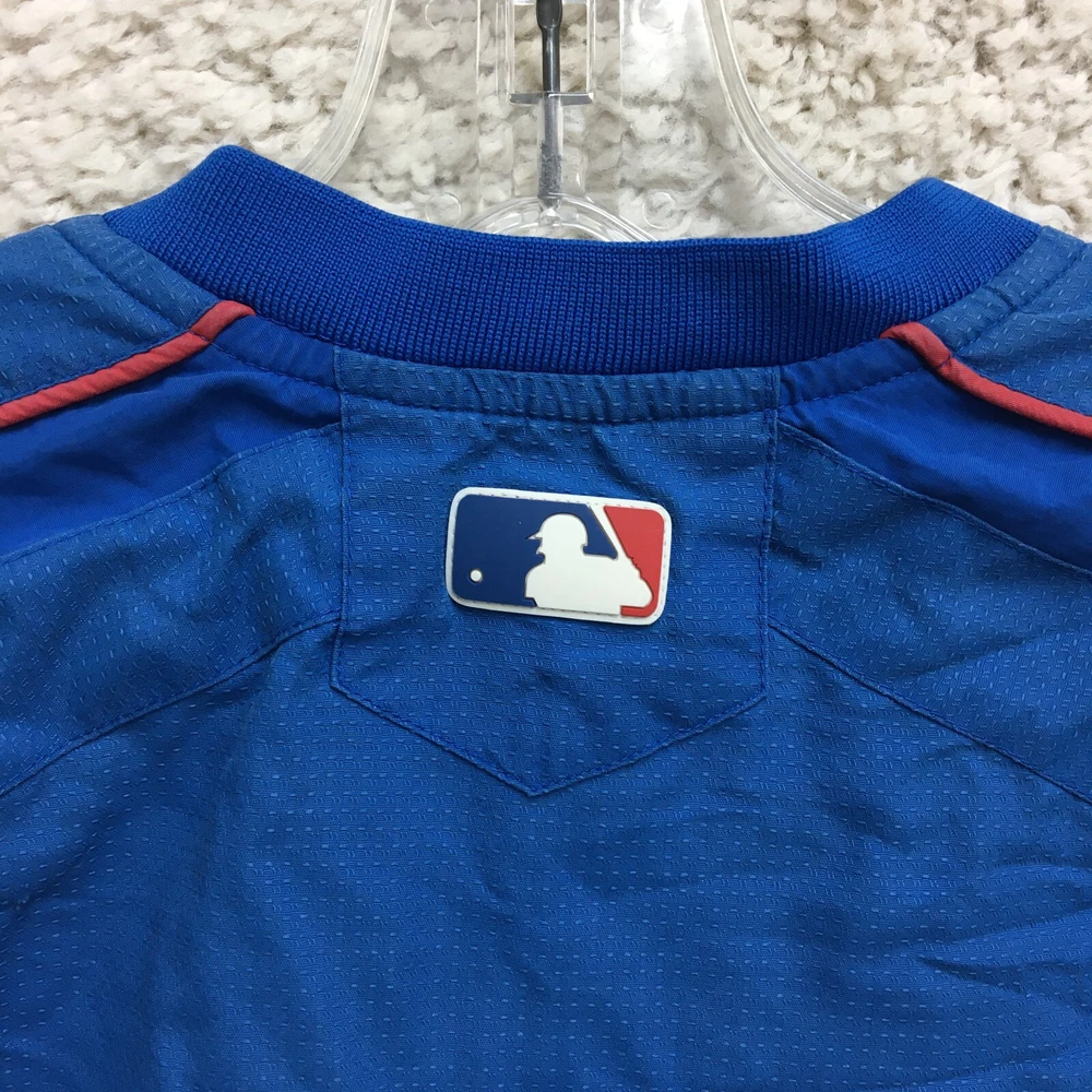 Product: Jacket Brand: Majestic Team: Chicago Cubs Seller Notes: “Faded on the back. Good Used Condition. Please, See Pictures for Full Condition and Measurements.” Sport: Baseball UPC: Does not apply Size: M Color: Blue League: Major League (MLB) Country/Region of Manufacture: Indonesia Gender: Men Pre & Post Season: Regular Season Officially Licensed: Yes gtin13: Does not apply
