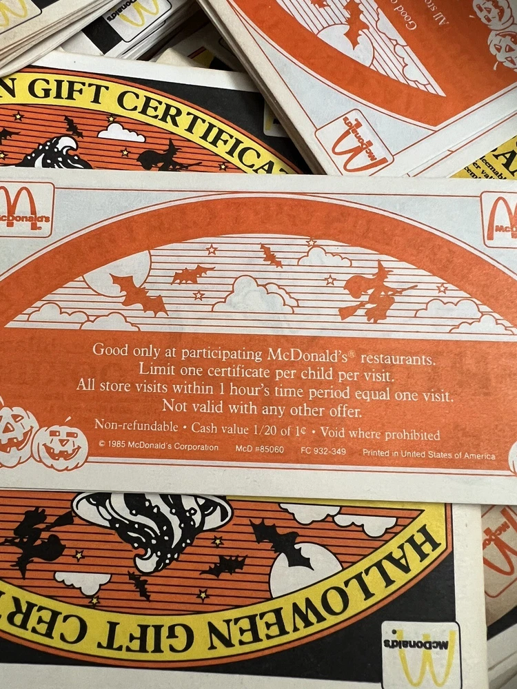 VINTAGE MCDONALDS GIFT CERTIFICATE BOOKLET BOOKLET of FREE COUPONS ( 12 COUPONS IN BOOKLET 1985 EXPIRED SELLING AS A COLLECTABLE !!! BUY AS-IS ( NO RETURNS) NICE CONDITION, VERY MINOR WEAR
