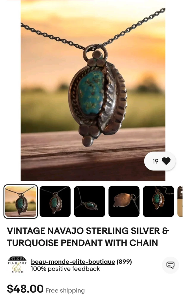 This vintage Navajo pendant features a unique asymmetrical amulet design crafted from sterling silver and set with a single oval turquoise gemstone. The pendant hangs from an 18-inch chain with a spring ring closure, in a style that exudes beauty and nature-inspired motifs. Handmade with a bezel setting, this unisex piece showcases Native American ethnic influences. Ideal for those who appreciate authentic tribal craftsmanship and timeless elegance in their jewelry collection. This piece is typical of the early Navajo Craftsman that doesn't waste money on stamps, therefore most Navajo jewelry is devoid of purity markings or trademarks. This is real authentic turquoise that appears to have traces of silver, and is hand etched .925 Sterling Silver, Tested positive for Sterling .925. Satisfaction Guaranteed or your money back! Umpqua Treasures Amy n Jeff