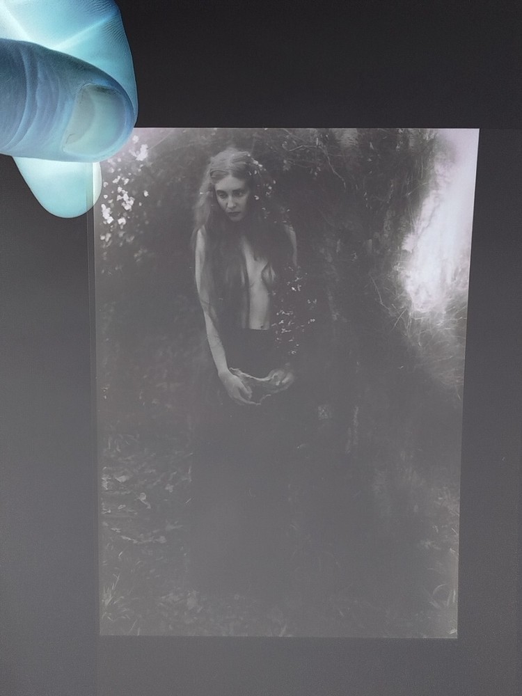 La photographie en noir et blanc est remarquée pour la pose sensible et délicate de cette jeune femme, dans un paysage d’été à la campagne. Probablement un exemplaire unique.