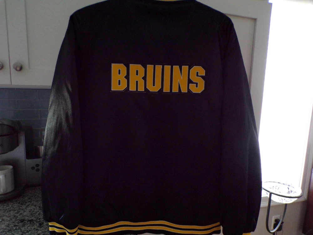 NEVER WORN IS THIS VINTAGE NIKE BRUINS SATIN BOMBER JACKET. THE SIZE IS A YOUTH XL. THE MEASUREMENTS ARE 26 INCHES LONG, SHOULDER TO WRIST IS 28 INCHES, THE UNERARM IS 19 AND THE UNDERARM TO UNDERARM IS 22 INCHES. PLEASE E-MAIL WITH ANY QUESTIONS. FREE SHIPPING