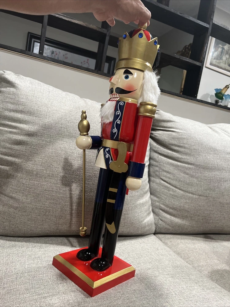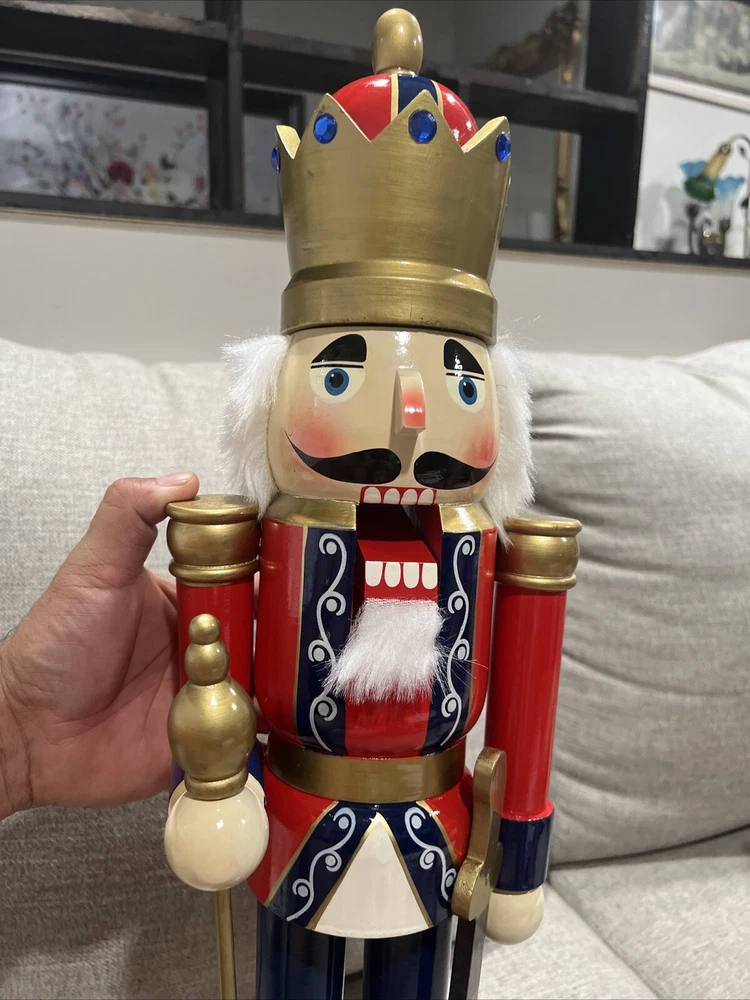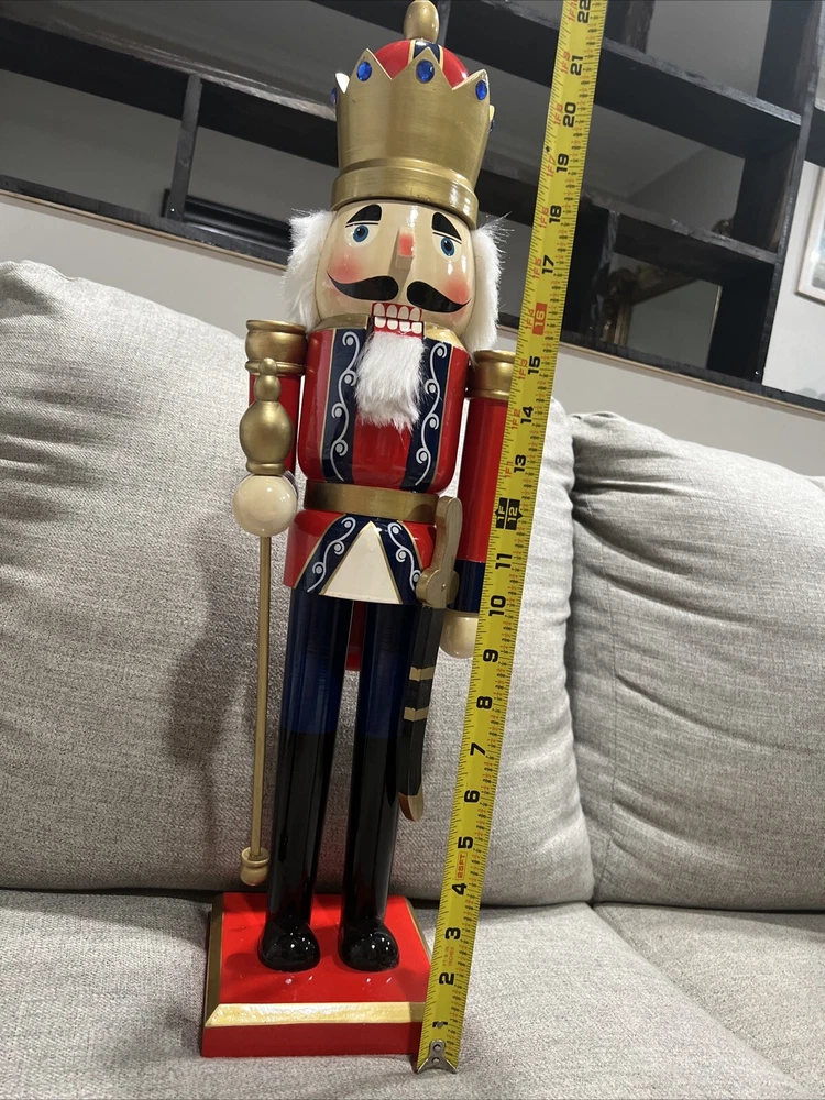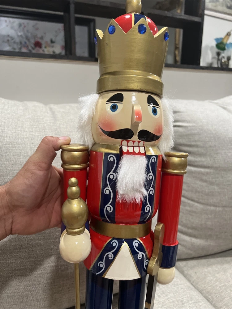 Add a touch of vintage charm to your Christmas decor with this large, wooden nutcracker figurine. Standing at 24 inches tall, this blue-colored figurine features intricate details and a seasonal theme that makes it a perfect addition to your collection of animal-themed collectibles. Made of high-quality wood, this figurine is designed to last and will make a great decorative piece for years to come. Whether you're a fan of anime or simply love toy soldiers, this nutcracker figurine is a must-have for your collection. New no box Look at the pictures and ask questions before making your purchase
