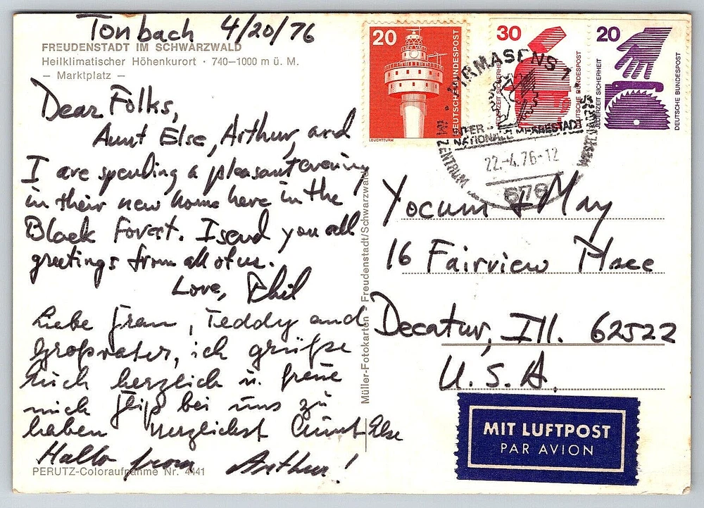 Antique: Yes Subject: Cities & Towns Orientation: Horizontal Signed By: Sender Seller Notes: “Good Vintage Condition. See Pictures And Description Closely For Details.” Occasion: Postcard Original/Licensed Reprint: Original Brand/Publisher: Muller-Fotokarten Vintage: Yes Artist: Postcard gtin13: DOES NOT APPLY Features: Divided Back, Stamp, Stamped, Original Genuine Antique Vintage Postcard Stamp: Yes Country/Region of Manufacture: Germany Character: Postcard Type: VINTAGE OLD ANTIQUE POSTCARD Era: Divided Back (1907-1915) Posted: Yes Franchise: Postcard Number of Items in Set: 1 Theme: Advertising, Architecture, Cities & Towns, Community Life, Countries, Cultures & Ethnicities, Domestic & Family Life, Famous Places, Floral & Gardens, Flowers & Plants, Historical Figures, People, Photographs, Seasons, Social History, Tourism, Transportation, Travel, Postcard, Antique, Vintage, Ephemera, Collectible, Memorabilia, Old, Retro, History, Card, Mail, Paper Size: Continental (6 x 4 in) Region: Germany Material: Paper Country: United States Time Period Manufactured: 1970-1979 Unit of Sale: Single Unit Signed: Yes Year Manufactured: 1976 Continent: North America Location: Germany City: Germany Color: Multicolor UPC: DOES NOT APPLY Postage Condition: Posted Featured Person: People Finish: Glossy