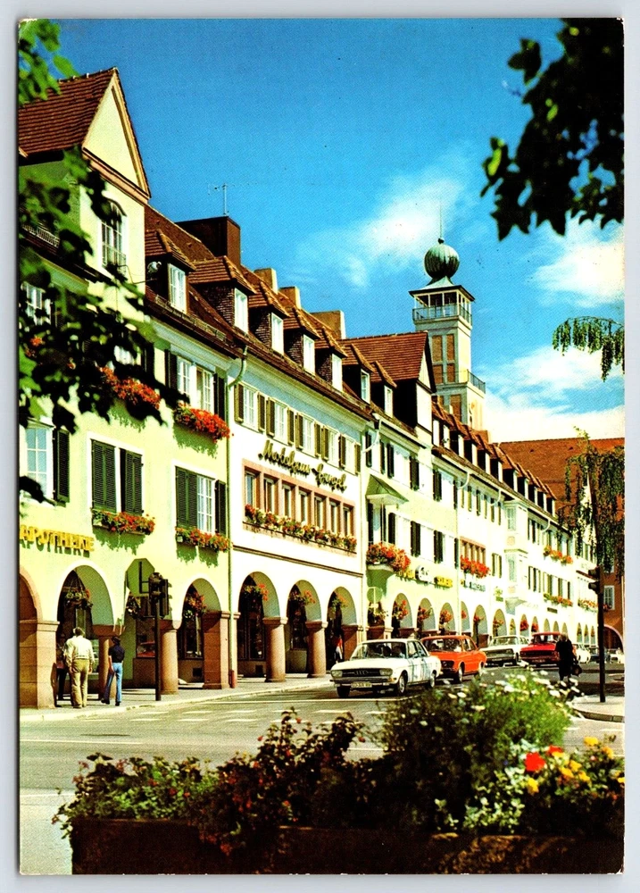 VINTAGE OLD ANTIQUE POSTCARD GERMAN MARKET PLACE BUILDINGS CARS GERMANY 1976