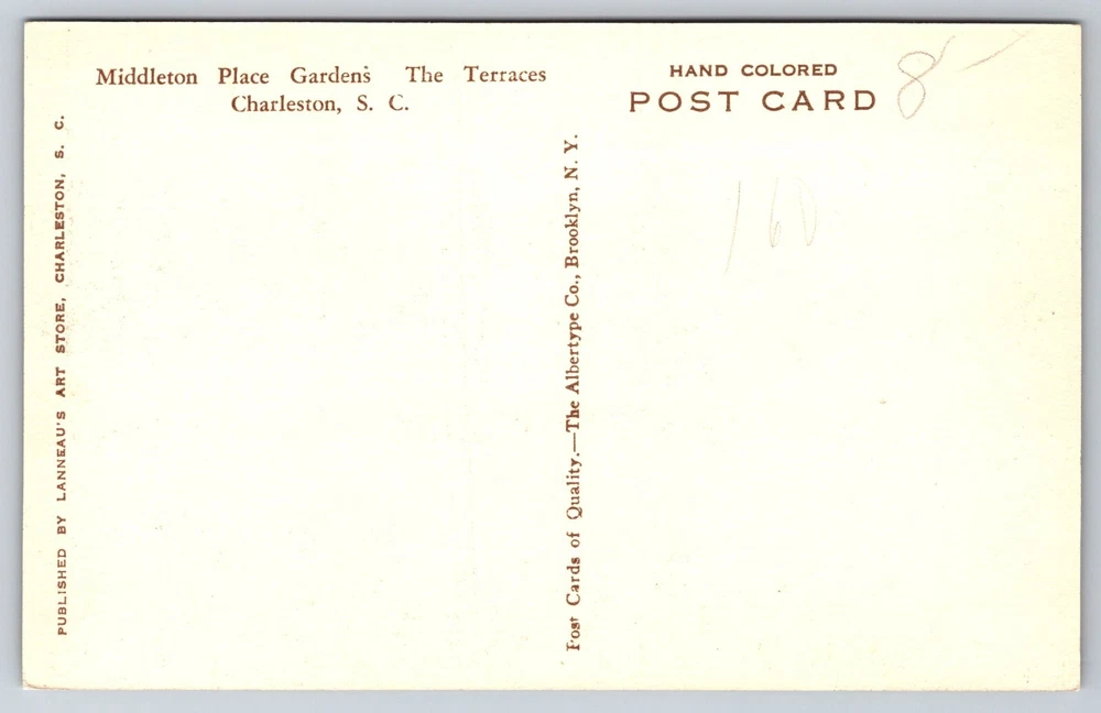 VINTAGE OLD ANTIQUE POSTCARD MIDDLETON PLACE GARDENS CHARLESTON SOUTH CAROLINA