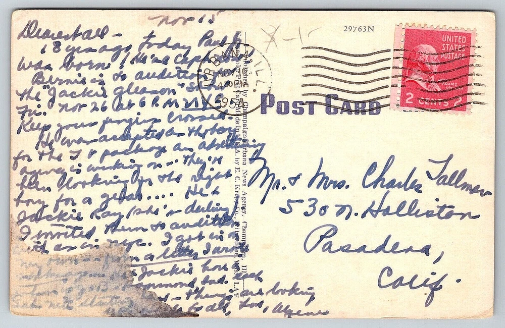 WELCOME TO People And Places Of The Past Vintage Photographs & Postcards Here you will find genuine, authentic, antique, vintage photographs & postcards that can be used for collecting, genealogy, or crafting. Please visit our ebay store. Thank You for shopping with us! This vintage, antique postcard is in good condition. Please see high resolution pictures of the front and back of this postcard closely for detailed cosmetic condition prior to purchase. This postcard measures 3.50 inches by 5.50 inches. This postcard will be shipped to you packaged well inside of a clear plastic sleeve, inside of a quality 450 GSM rigid, sturdy stay flat envelope with cardboard inside to keep the card flat, and to protect the card during shipping within the United States. DO NOT BEND stickers will be applied to the outside of the envelope. Your post card will be delivered to the post office the same day, or the next business day, after receiving payment. Bad weather and holidays can affect the delivery times. Returns are accepted within 30 days of purchase. SHIPPING OPTIONS: Choose The Best Option For You For Cost And Speed Of Delivery 1. EBAY STANDARD ENVELOPE This is USPS First Class Mail and our standard way of shipping. No tracking (or minimal tracking) with this option. 3 - 6 business days (or more) estimated delivery, depending on destination location. If you would like your postcard delivered faster, please choose one of the other options below. 2. USPS GROUND ADVANTAGE Full bar code tracking available with this option. 2 - 5 business days estimated delivery, depending on destination location. 3. USPS PRIORITY MAIL Full bar code tracking available with this option. 1 - 4 business days estimated delivery, depending on destination location. Each item is inspected, packaged, weighed, and sealed individually for FAST SHIPPING! We try our best to represent the item in the images as accurately as we can. However, due to variations in color in image scanners, computer screens, and cell phone displays, the color may be slightly different than the actual product. Vintage postcards and photographs that are made of paper or cardboard can show normal signs of wear associated with an antique image including paper curling, folds, creases, holes, dents, stains, rips, water damage, odors, scratches, worn edges, fading, crackling, peeling, handwriting, finger prints, postage cancellations, postage stamps, missing pieces, trimming, glue or paper residue from being put into or taken out of old postcard/photograph albums, other damage that may not show up by the image scanner, or can be out of focus by the original printer or photographer. They will have imperfections from being mailed and/or from their antique age. Thank You For Shopping With People And Places Of The Past! Visit our ebay store at www.ebay.com/str/peopleandplacesofthepast New Items Added Every Week!
