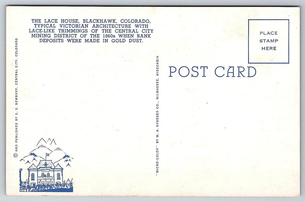 VINTAGE OLD ANTIQUE POSTCARD VICTORIAN LACE HOUSE PEOPLE BLACKHAWK COLORADO USA