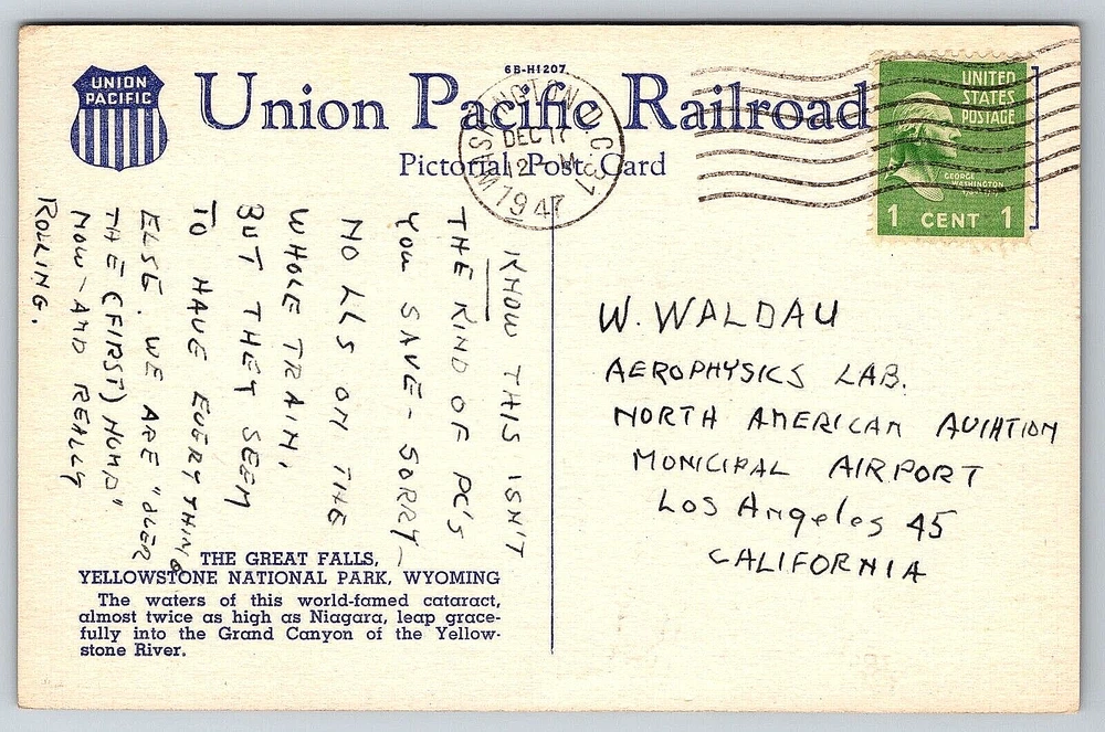Unit of Sale: Single Unit Franchise: Postcard Posted: Yes Featured Person: None Brand/Publisher: UNION PACIFIC RAILROAD Occasion: Postcard Antique: Yes Country/Region of Manufacture: United States Seller Notes: “Good Vintage Condition. See Pictures And Description Closely For Details.” Stamp: Yes Signed By: Sender Year Manufactured: 1947 UPC: DOES NOT APPLY City: Great Falls Continent: North America Signed: Yes Type: VINTAGE OLD ANTIQUE POSTCARD Country: United States Vintage: Yes Region: Wyoming gtin13: DOES NOT APPLY Postage Condition: Posted Size: Standard (5.5 x 3.5 in) Time Period Manufactured: 1940-1949 Finish: Matte Era: Divided Back (1907-1915) Color: Multicolor Orientation: Horizontal Character: Postcard Material: Paper Number of Items in Set: 1 Features: Divided Back, Stamp, Stamped, Original Genuine Antique Vintage Postcard Theme: Aerial View, Famous Places, Historical Figures, Landscapes, National Parks, Roadside America, Seasons, Tourism Artist: Postcard Original/Licensed Reprint: Original Location: Yellowstone National Park, Wyoming USA Subject: Yellowstone