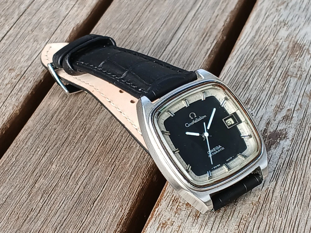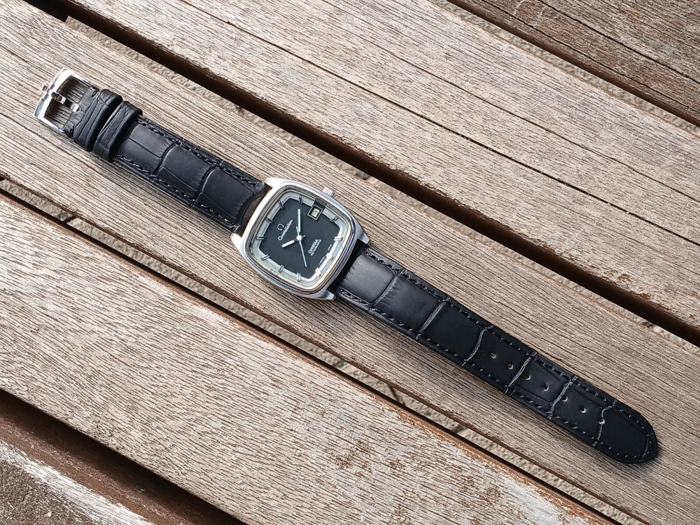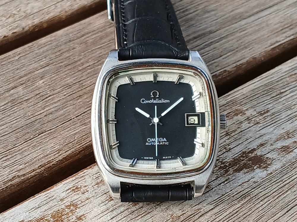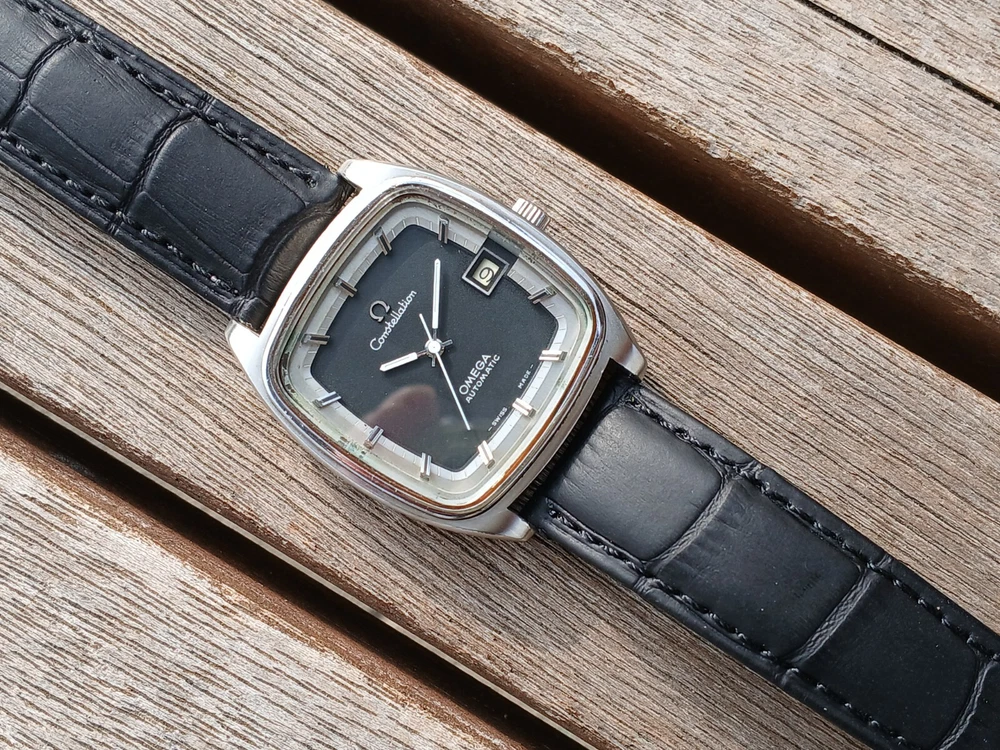 VINTAGE OMEGA CONSTELLATION DATE AUTOMATIC MEN`S DRESS SQUARE WATCH Model_ OMEGA CONSTELLATION Type _ Automatic Gender_ MEN`S Condition_ Nice working condition. Movement _ OMEGA Automatic Movement Movement in working condition. It has been overhauled recently, so it works very well. the watch keeps good time Case Condition_ It is clean Dial_ BLACK color Case size : 36mm (not including crown)apx Band_aftermarket leather band & buckle / clean condition Watch full-length : 21cm / 8.26 inch We can't guarantee wateproof in any old vintage watches Vintage watches If you do not wear it for a long time Time stops. Before Wear The crown clockwise Please rotate about 30 times. And shake it lightly. It will work normally. Movement check finished item. This item is not a new watch. It is a vintage item. This is a vintage watch in good condition. If you want the condition of a new watch, please purchase a new watch. If you want a stylish vintage style, please purchase it. All of my watches are genuine Therefore, if you want to buy it, don't worry. But if you're worried about buying, don't buy it. Thank you