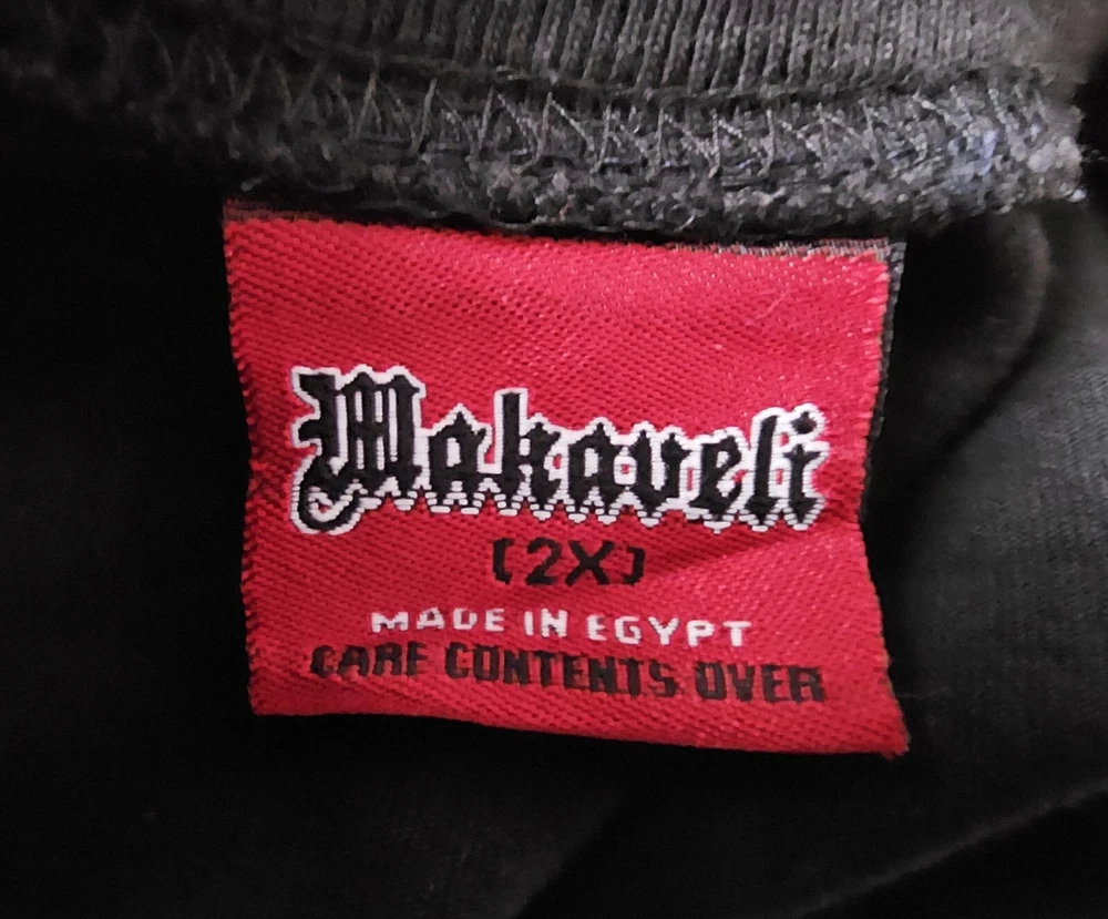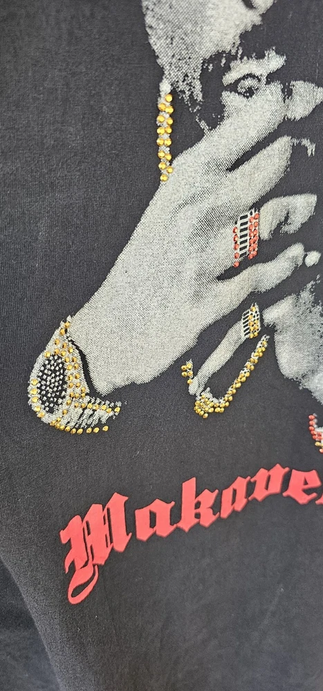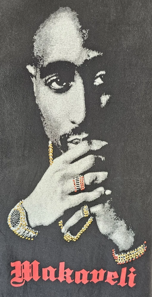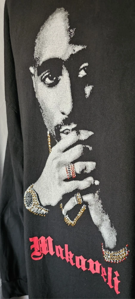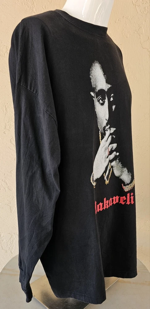 UNWORN, NEVER WASHED, SECURELY STORED SINCE NEW! ULTRA-RARE, ORIGINAL, AUTHENTIC 2000s Y2K TUPAC SHAKUR w/ EMBELLISHED JEWELRY ACCENTS, RED MAKAVELI BRANDED TAG, BLACK LONG SLEEVE SHIRT IN SIZE 2XL!! This shirt has never been worn or washed! It is in NEAR-MINT/MINT CONDITION! This is embellished with simulated jewels on the watch, necklace, rings, and bracelet. (There may be just a few jewels missing, but it's very hard to tell and isn't noticeable unless inspecting extremely close) It is an incredibly soft and thick cotton blend. It looks and feels like it just came off the rack and as-new! There are no stains, holes, frays, cracking, odors, etc. The colors are bright and vivid. This comes from a smoke-free and pet-free home. THEY DON'T GET MUCH NICER THAN THIS! (See photos for details and condition - many more photos are available. Just let me know what you'd like to see.) The original red Makaveli tag is in place and perfect. Labeled size 2X. 80% Cotton, 20% Polyester. Made in Egypt. Approximate measurements are as follows: Underarm to underarm/pit to pit (laying flat): 27" (54 inch chest) Length (laying flat) Neckline to bottom hem: 31" Disclaimer: Please review the measurements and photos very carefully. This is a used shirt, and some light wear/fading should be expected unless otherwise noted above. Please ask ANY and ALL questions prior to purchasing. This sale is final, and no returns are accepted. It is guaranteed to be as described, however. Extra secure and fully insured shipping via USPS Mail. I SHIP FAST!! (Typically, the same day that payment is received) Please check out my other items for more awesome, vintage clothing and unique collectible merchandise!! Thank you for looking!