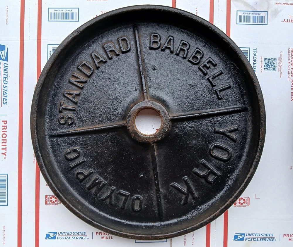 Brand: YORK Country/Region of Manufacture: United States Sport/Activity: Weight Lifting Type: Olympic Number of Items in Set: 2x 45 lb weight plates Item Weight: 2x45 lb plates Material: Iron Set Includes: 2x 45 lb weight plates Vintage: Yes
