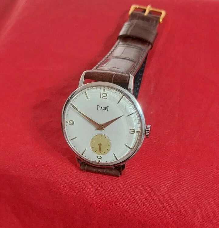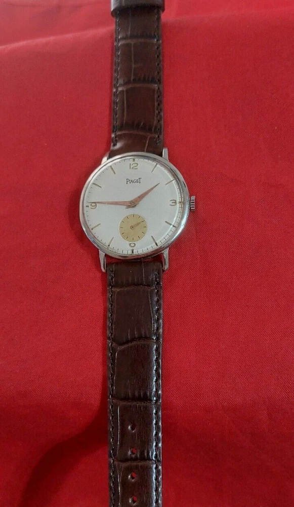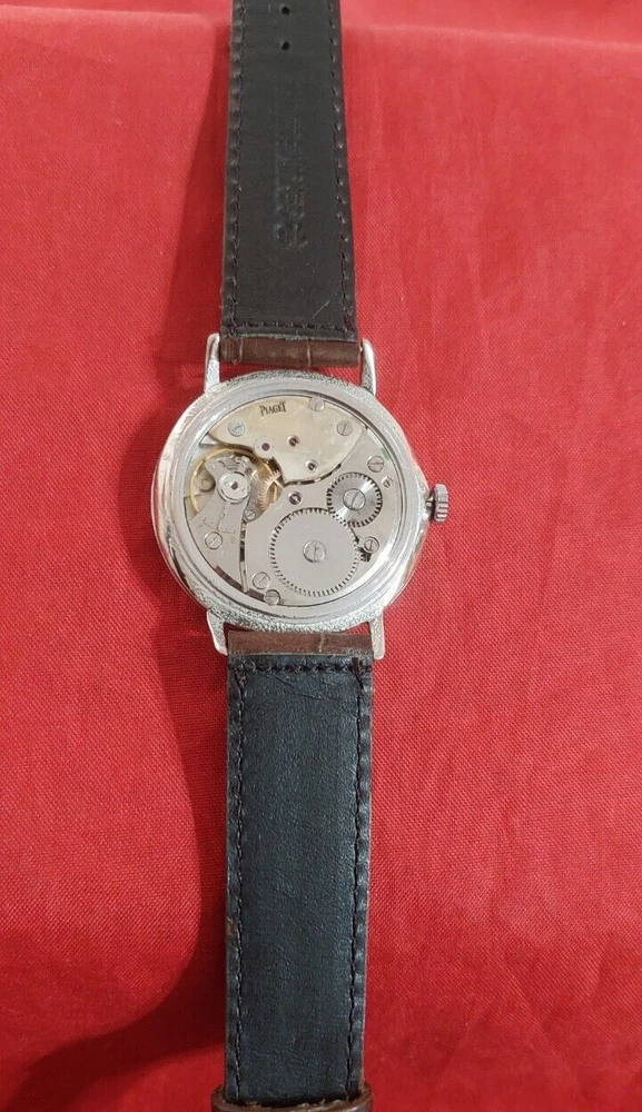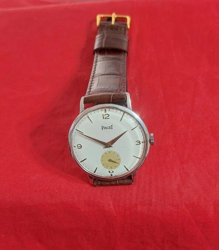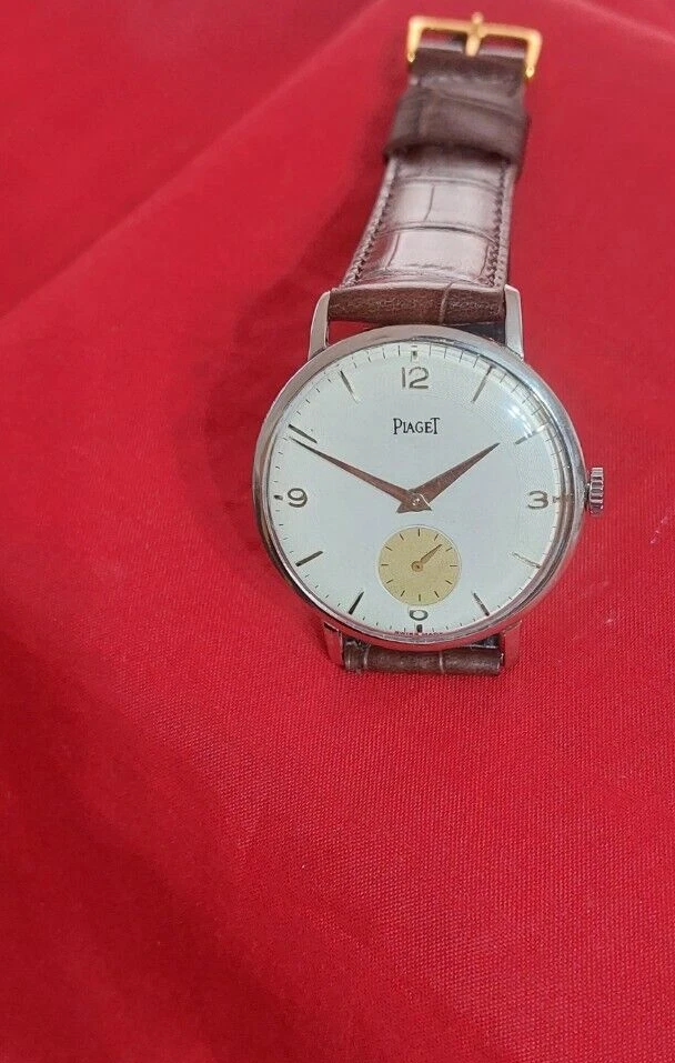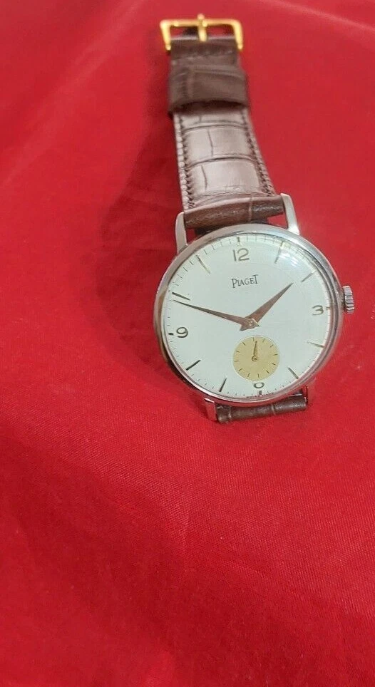 VINTAGE PIAGET ART - DECO 1960's WristWatch Movement MANUAL WITH CALENDAR OF COLLECTION BEAUTIFUL WATCH MOVEMENT: ORIGINAL SWISS MANUAL, Piaget SIGNED SWISS, 17 JEWELS THIS MOVEMENT IS IN VERY GOOD CONDITION AND IT WORKS PERFECTLY CLEANING SERVICE RECENTLY DONE BY OUR WATCHMAKER DIAL: in tone Two chamapagne and gold professionally restored, with gold tone hands CROW5: unsigned CRYSTAL: Acrylic. CASE: STAINLESS STEEL ON BACK COVER,SEE PICTURE SIGNED PIAGET, IN VERY GOOD CONDITION SIZE: 37 MM WITHOUT CROWN AND 44 MM FROM LUG TO LUG STRAP: MADE OF LEATHER AND INCLUDED AS GIFT YOU ARE BIDDING ON THE WATCH ONLY, THE BAND IS FREE The large, clear unaltered pictures are an important part of the description. Please look carefully. We check the watch to be certain it keeps time and runs when listed and we re-check before shipping Fast Shipping by DHL EXPRESS!! !! USD 45 With tracking number and insurance ! (DEPENDING ON CUSTOM DELAYS IT COULD TAKE BETWEEN 7/10 BUSSINESS DAY OR EVEN MORE DEPENDING ON THE DISTANCE TO EVERY COUNTRY)