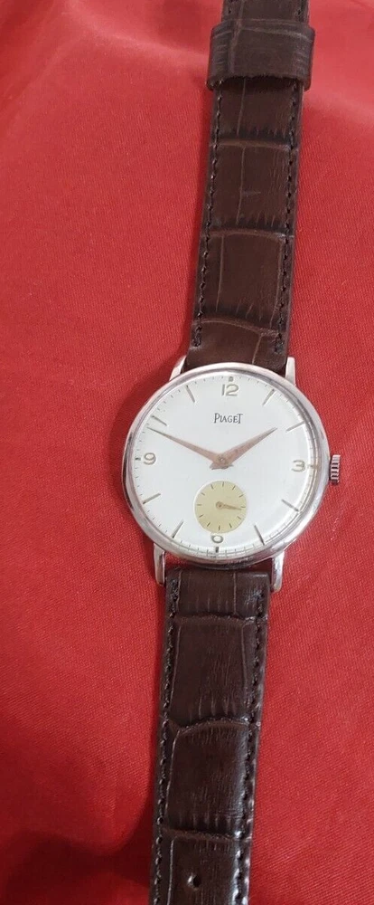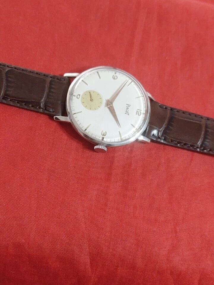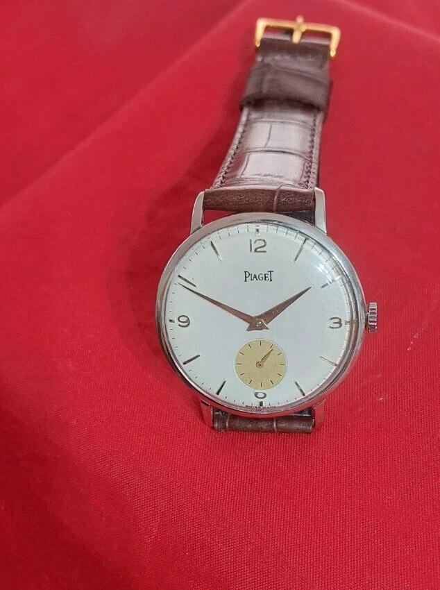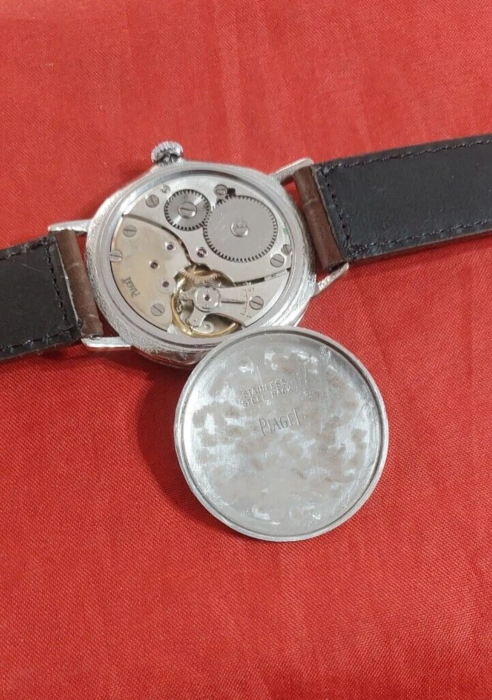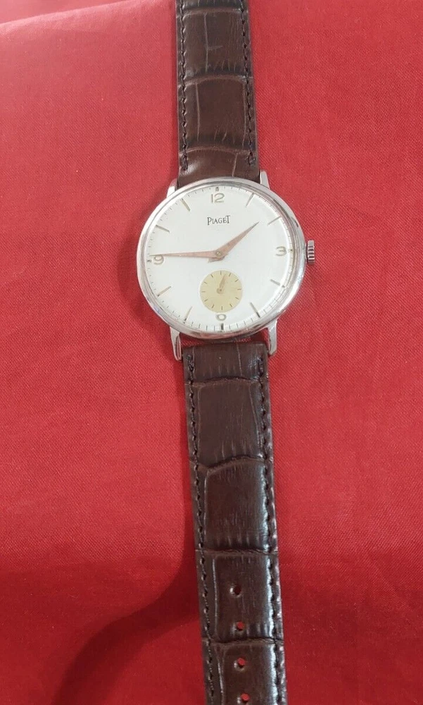 VINTAGE PIAGET ART - DECO 1960's WristWatch Movement MANUAL WITH CALENDAR OF COLLECTION BEAUTIFUL WATCH MOVEMENT: ORIGINAL SWISS MANUAL, Piaget SIGNED SWISS, 17 JEWELS THIS MOVEMENT IS IN VERY GOOD CONDITION AND IT WORKS PERFECTLY CLEANING SERVICE RECENTLY DONE BY OUR WATCHMAKER DIAL: in tone Two chamapagne and gold professionally restored, with gold tone hands CROW5: unsigned CRYSTAL: Acrylic. CASE: STAINLESS STEEL ON BACK COVER,SEE PICTURE SIGNED PIAGET, IN VERY GOOD CONDITION SIZE: 37 MM WITHOUT CROWN AND 44 MM FROM LUG TO LUG STRAP: MADE OF LEATHER AND INCLUDED AS GIFT YOU ARE BIDDING ON THE WATCH ONLY, THE BAND IS FREE The large, clear unaltered pictures are an important part of the description. Please look carefully. We check the watch to be certain it keeps time and runs when listed and we re-check before shipping Fast Shipping by DHL EXPRESS!! !! USD 45 With tracking number and insurance ! (DEPENDING ON CUSTOM DELAYS IT COULD TAKE BETWEEN 7/10 BUSSINESS DAY OR EVEN MORE DEPENDING ON THE DISTANCE TO EVERY COUNTRY)