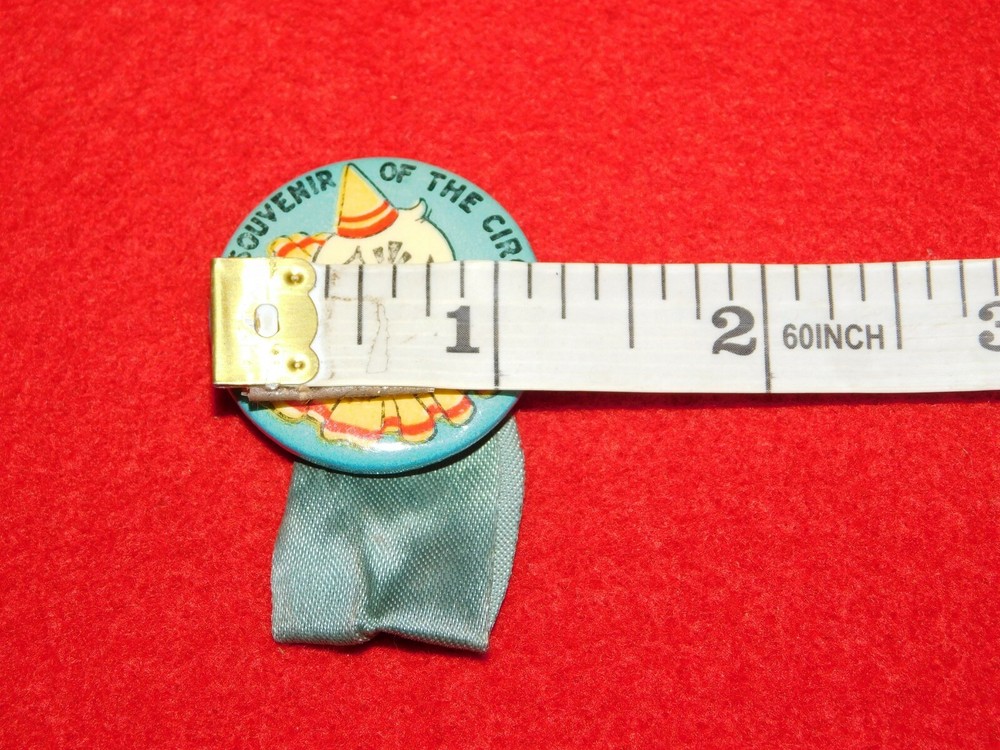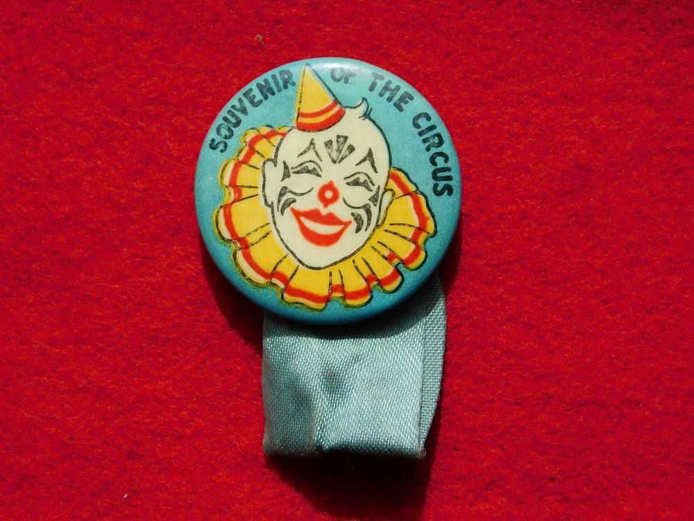 YOU ARE BIDDING ON....... VINTAGE PINBACK BUTTON SOUVENIR OF THE CIRCUS CLOWN .... . .. SHOWS HANDLING/AGE WEAR..HAS SCRATCHES/PAINT LOSS/AGE DISCOLORATION..... ..PLEASE VIEW PHOTOS FOR CONDITION.***PLEASE E-MAIL IF YOU HAVE A QUESTION OR WANT AN ADDITIONAL PICTURE....PLEASE VISIT MY EBAY STORE FOR ADDITIONAL VINTAGE ITEMS..THANK YOU***3T-BX0305-PLSBG7403-4